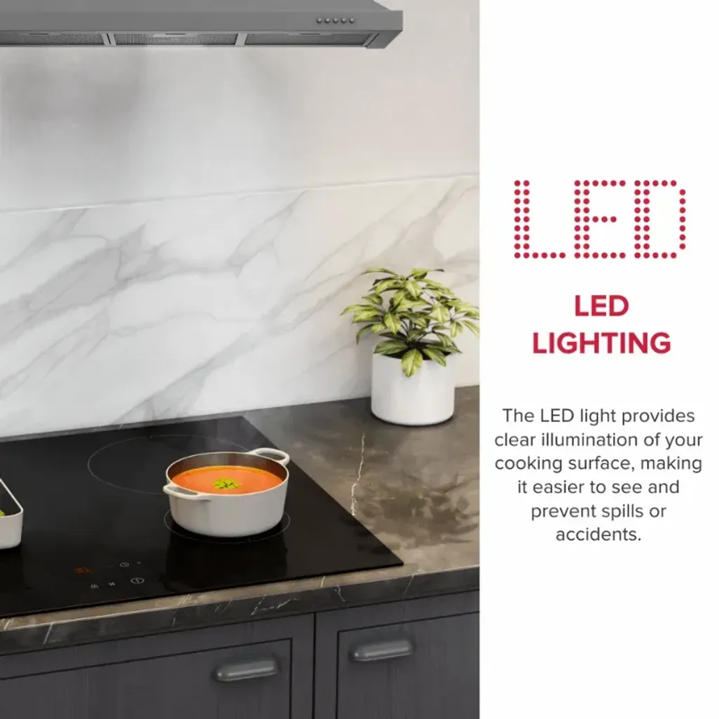 The Defy 90cm Stainless Steel Chimney Cooker Hood is a chimney extractor, with three aluminium filters and two charcoal filters. You can select one of the three-speed options on the mechanical push-button controls. LED lighting will provide better light to help when cooking. In addition, they consume less energy and will last longer than conventional bulbs.