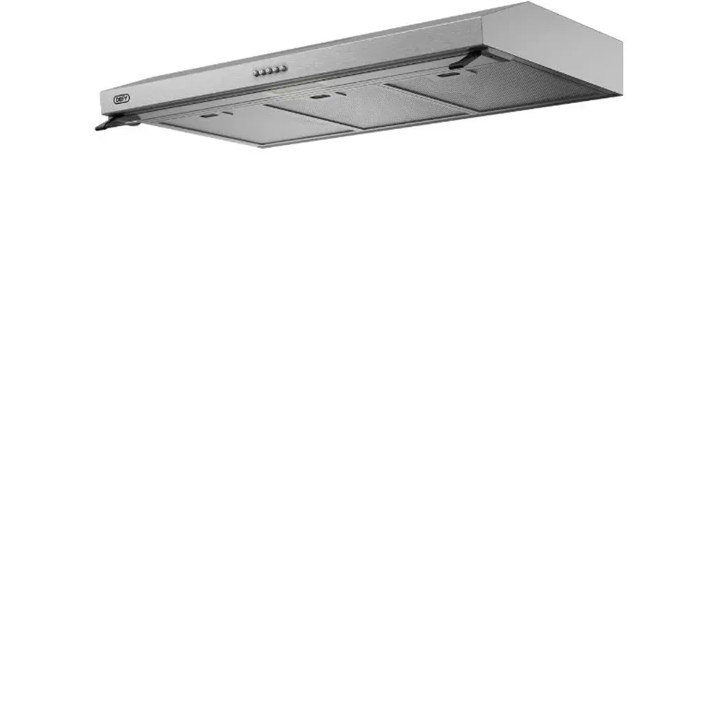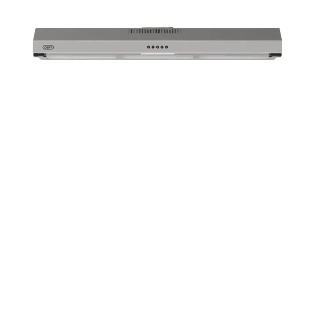 The Defy 90cm Stainless Steel Cooker Hood is a wall-mounted extractor, with a flat glass cover, and there are three aluminium filters and two charcoal filters. You can select one of the three-speed options on the mechanical push-button controls. LED lighting will provide better light to help when cooking. In addition, they consume less energy and will last longer than conventional bulbs.