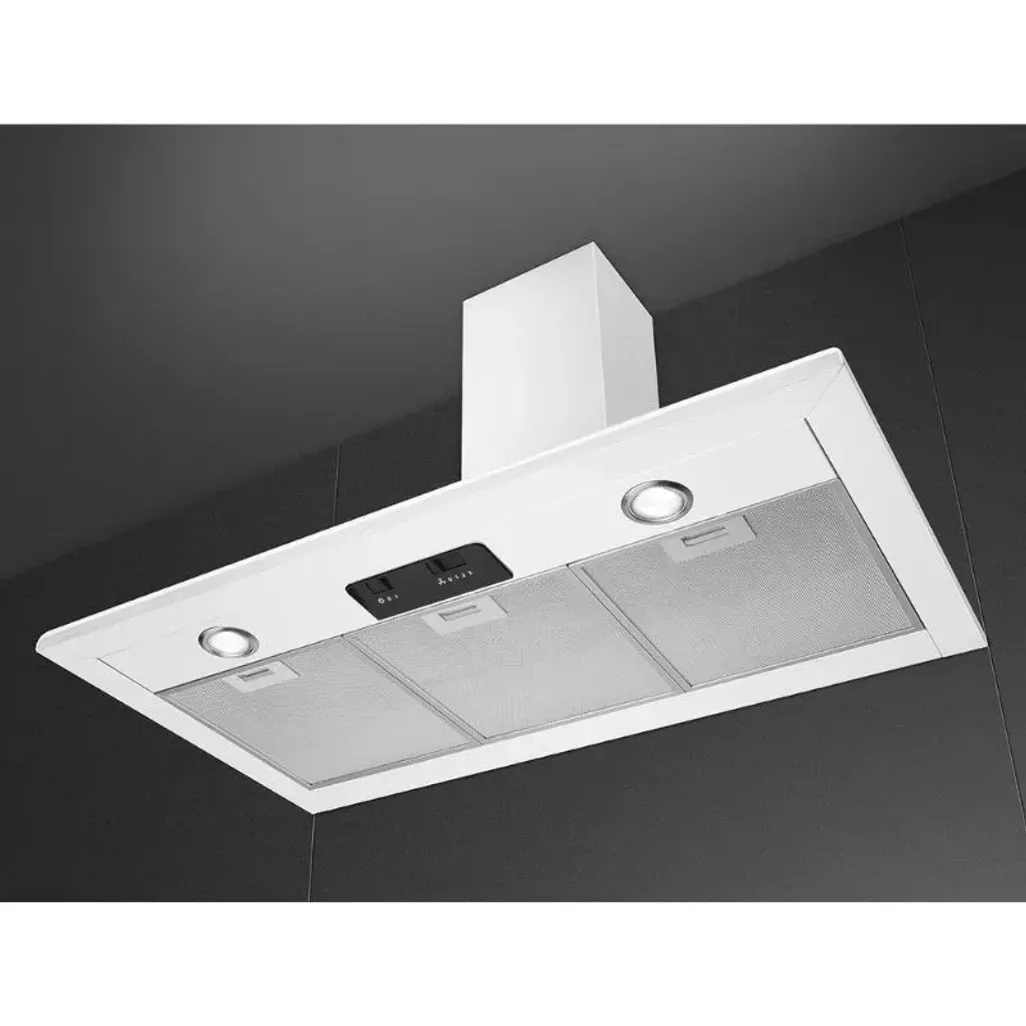 The Smeg 90cm White Chimney Extractor Hood has three speed settings, so you are allowed to set the airflow at the correct level according to your needs, while the 3 aluminum grease filters will guarantee better durability and performance.