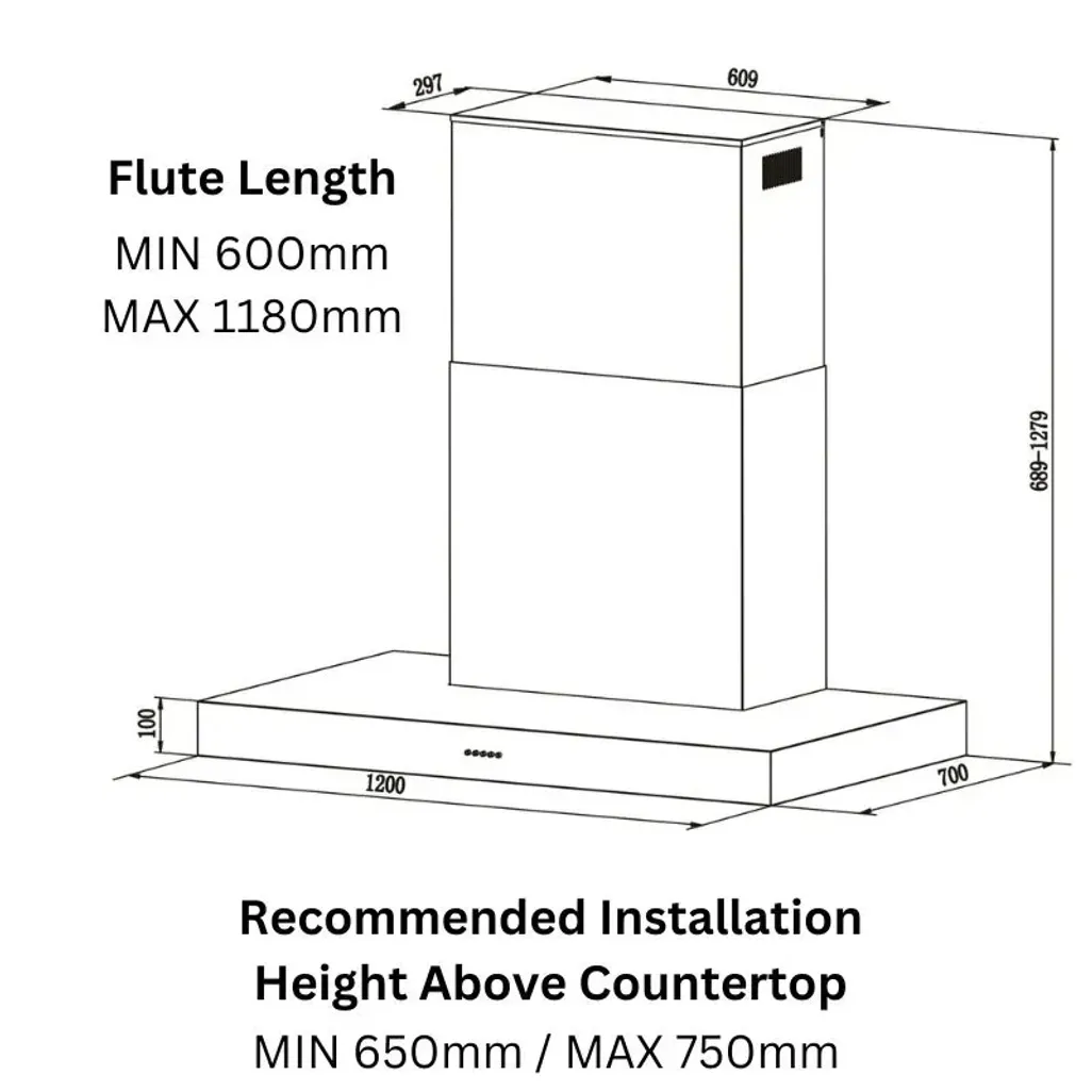 The dimensions of this Falco Gas Braai Extractor are H 1279mm x W 1200mm x D 700mm.