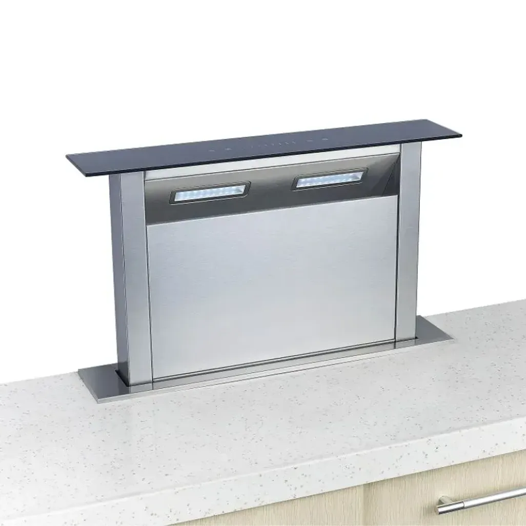Down Draft Extractors are discreetly concealed in your counter and they rise at the touch of a button, thus giving a ‘clutter-free look” in your kitchen. The Falco 60cm Down Draft Extractor has slide touch control, and 2 LED lights that will provide better light to help when cooking, in addition, LED lights consume less energy and last longer than conventional bulbs.
