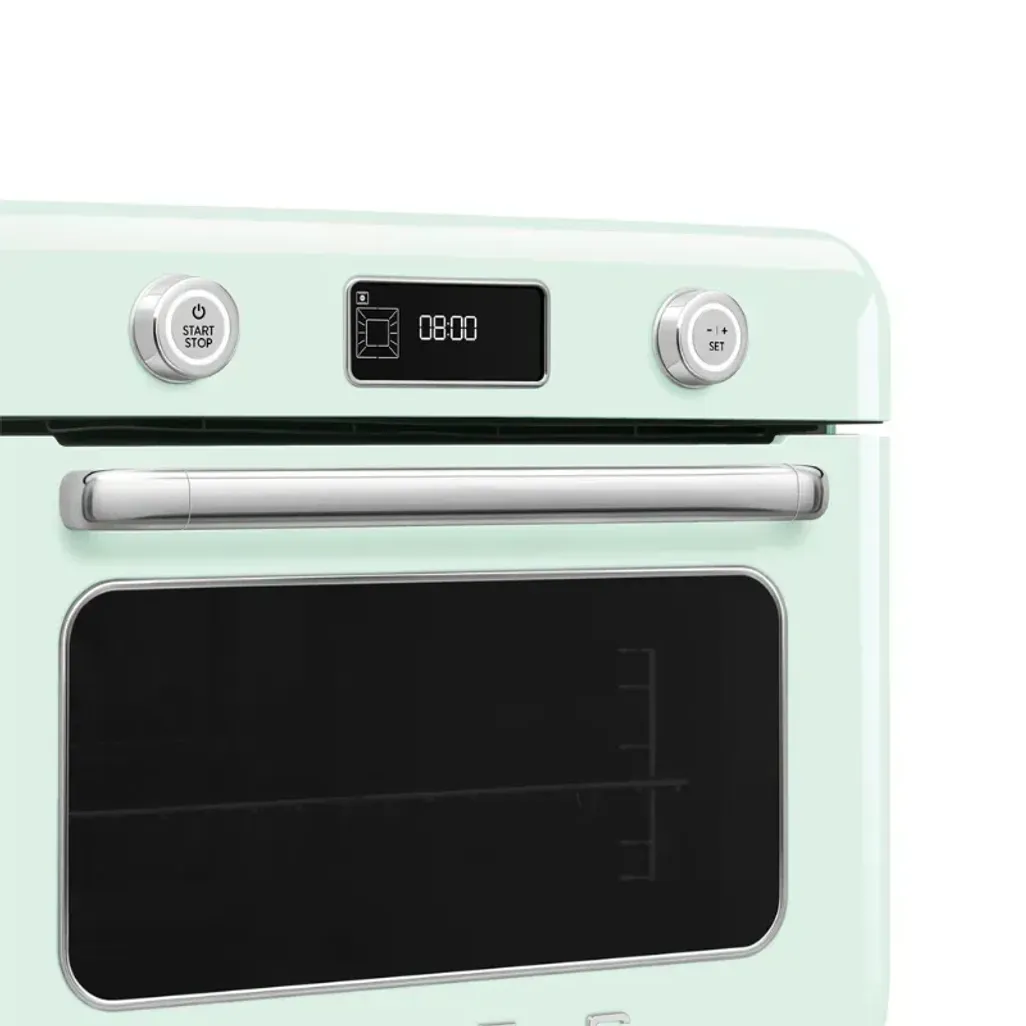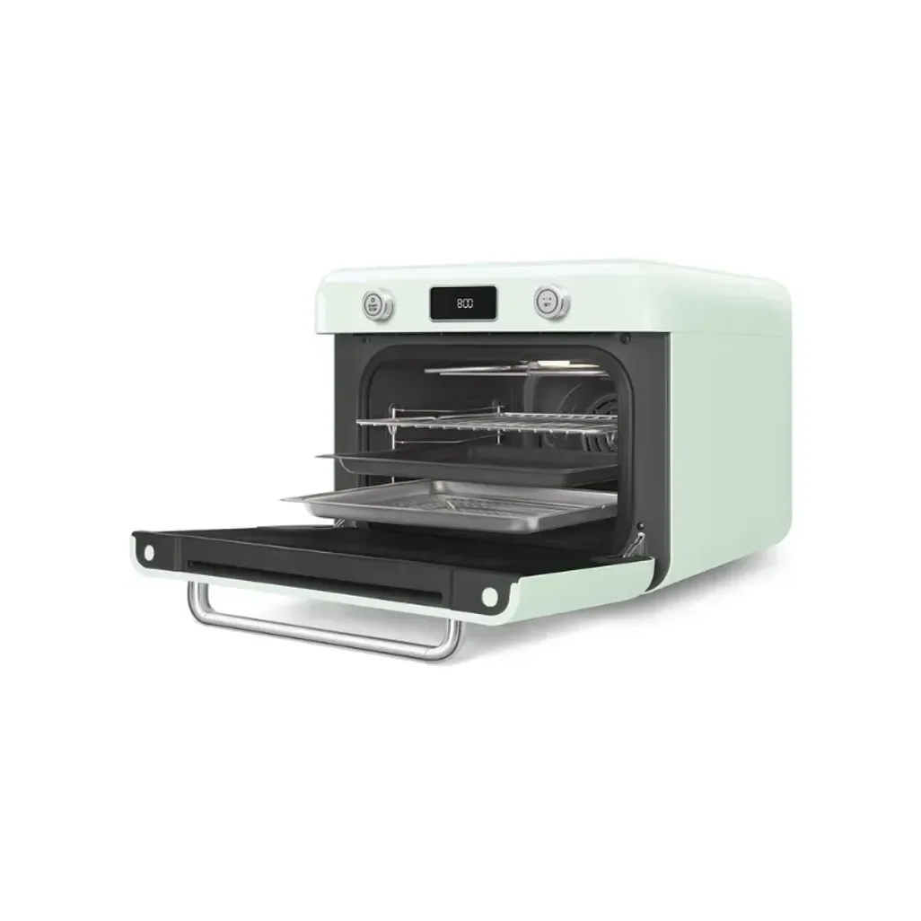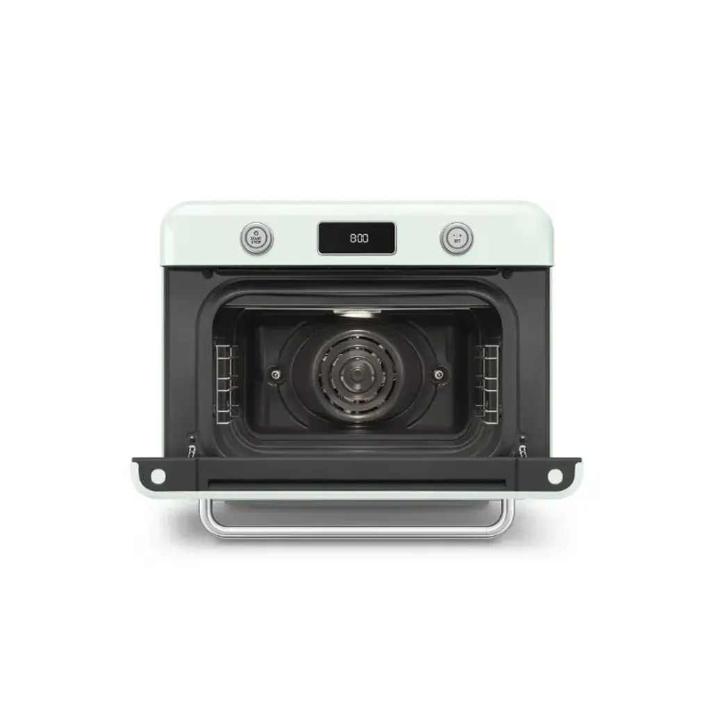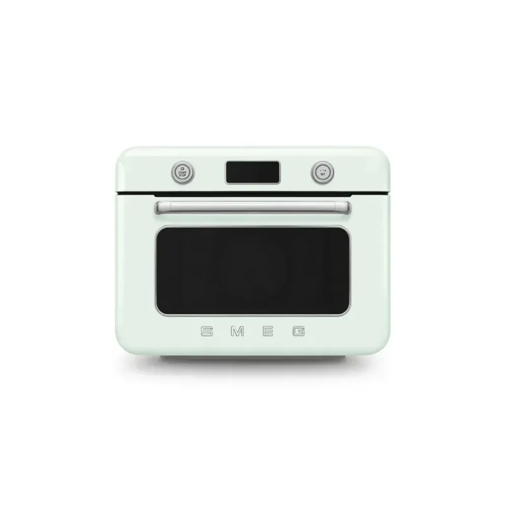Smeg has created a countertop oven that blends traditional and modern cooking with advanced Galileo Combi-steam Technology, for gourmet versatility and precision in any kitchen. The Smeg Retro 30L Pastel Green Countertop Steam Oven combines traditional oven functions with steam cooking functions, allowing you to create delicious meals.