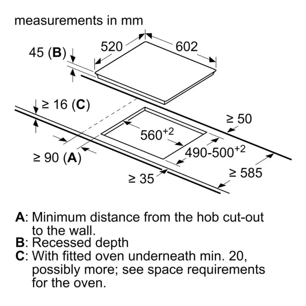 The dimensions of the Siemens 60cm Electric Hob are H 45mm x W 602mm x D 520mm, and it carries a 5-year guarantee.