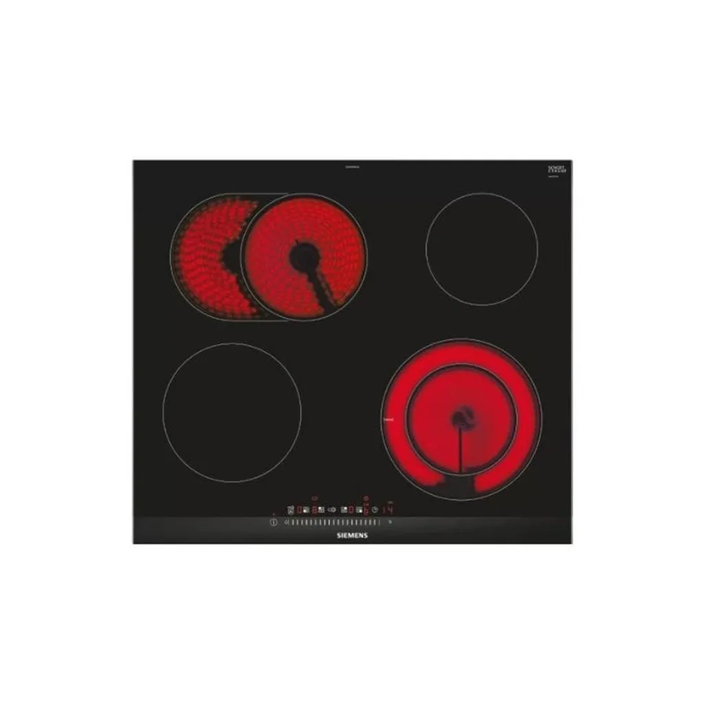 The Siemens 60cm Electric Hob is a radiant cooktop with a ceramic surface and there are 4 quick-lite cooking zones, including an extendable oval zone and a dual-zone, that you can make use of to cook meals for your friends and family. You can control the temperature of this 60cm Hob with the touchSlider control, by tapping the operating scale or by moving the slider with a single finger.