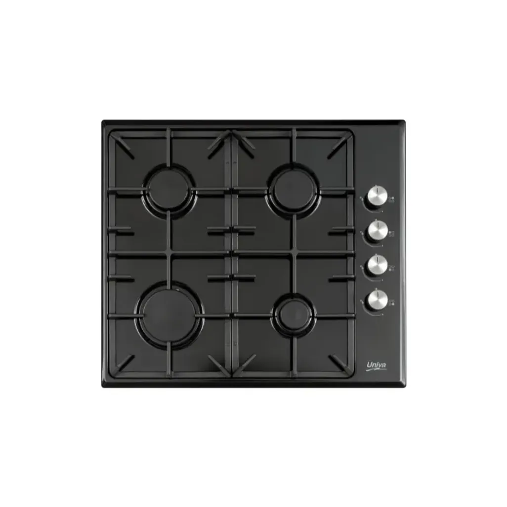The Univa 60cm Black Gas Hob is a black hob, that brings a touch of class and heaps of reliability through clever compact gas cooking. There are four high-quality gas burners, that are equipped with cast iron pan support. It provides a durable support surface for pots and pans to provide a better cooking experience, while the lateral control panels allow you to control the flame variable.