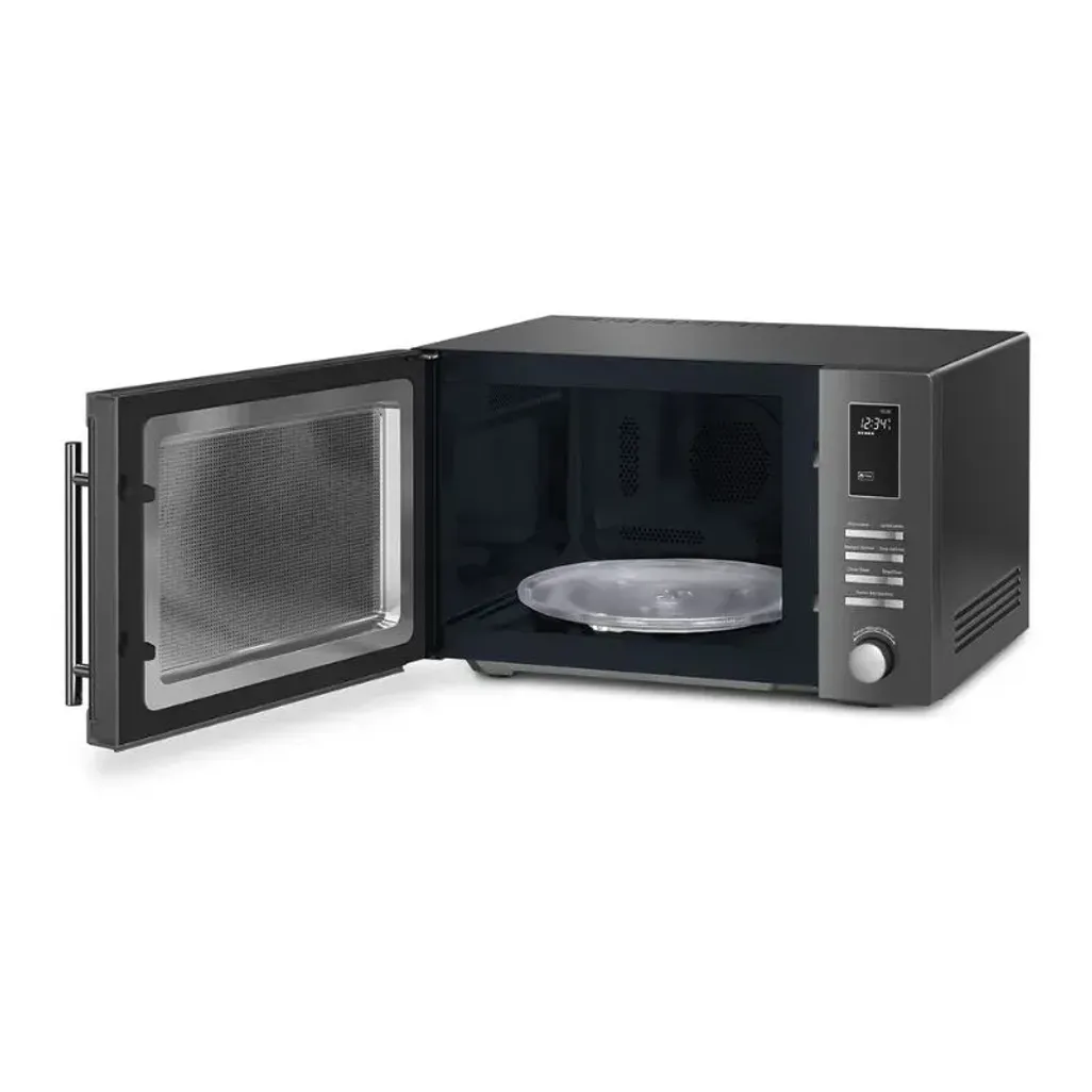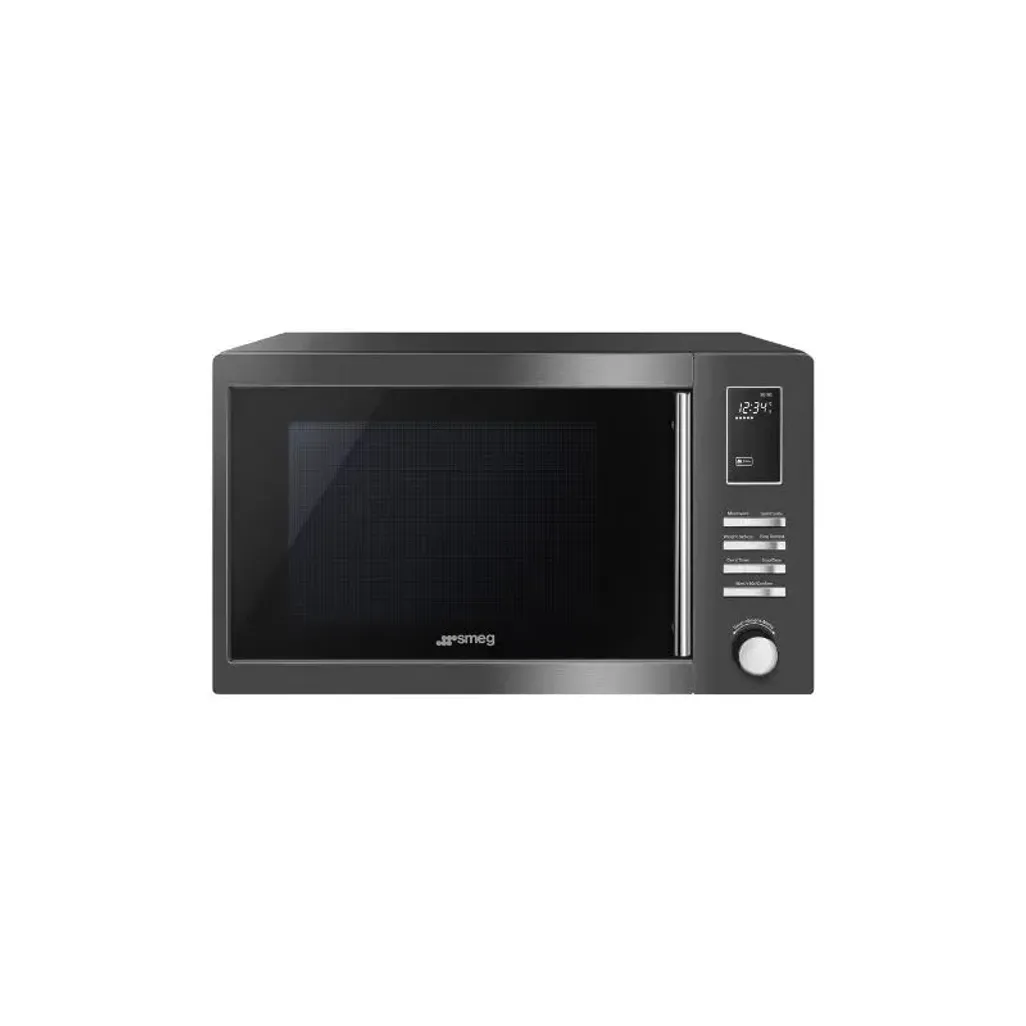 The Smeg 25L Black Microwave Oven is a countertop microwave, with a grill, that can be used to brown your dishes. This microwave has a ceramic enamel cavity, and there are two side lights in the internal cavity of the microwave.