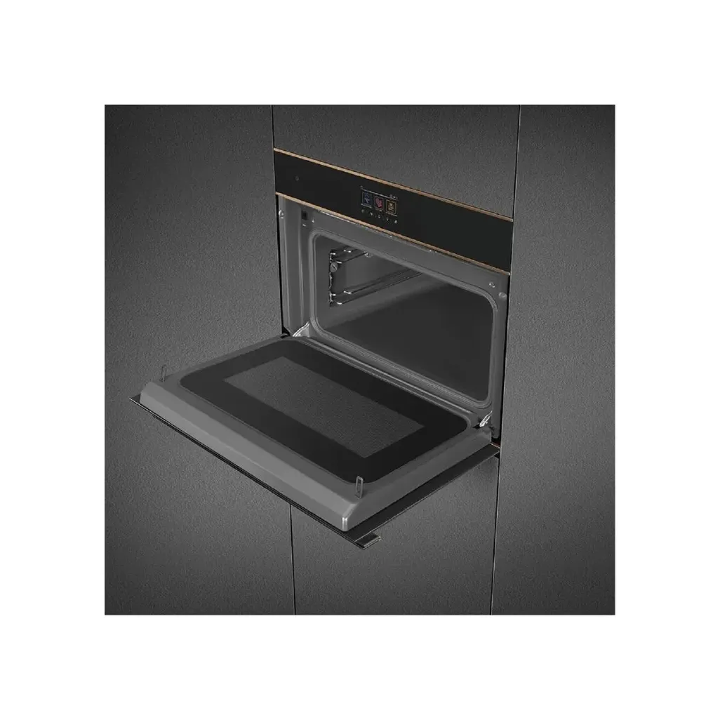 With 150 automatic programs, thanks to smartcooking, this Smeg 45cm Dolce Stil Novo Microwave Combi Galileo Oven might be compact, but it has so much to offer. 15 Cooking functions, 10 customisable recipes and 900W microwave power, cooking will begin a more pleasant and enjoyable experience. You can cook dishes with different cooking methods and be ready at the same time with the SameTime program. During microwave cooking, condensation inside the oven will be reduced due to its double chimney.