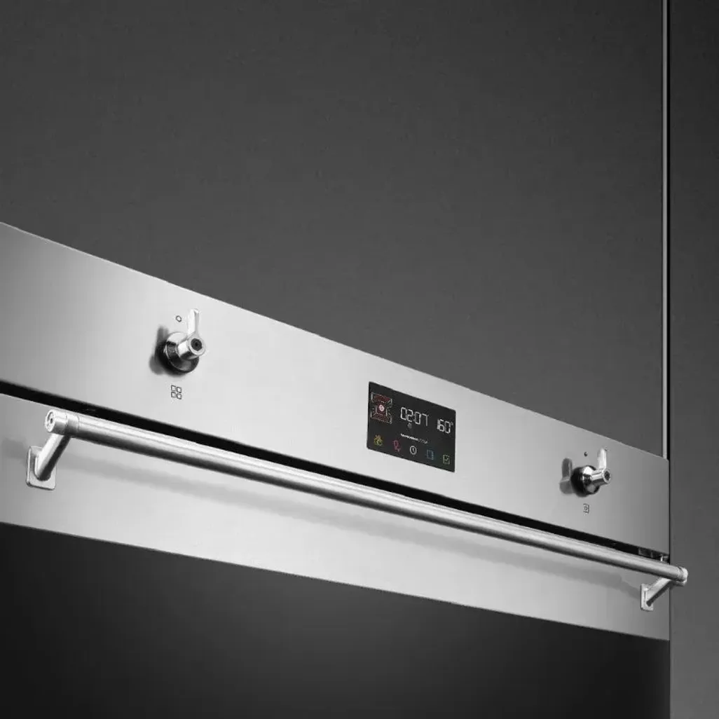 The Smeg 70cm Classica Built-In Oven has a patented, special antacid lining that is resistant to chipping and assists in keeping the interior of the 60cm oven clean, by considerably reducing the build-up of cooking residue and grease.