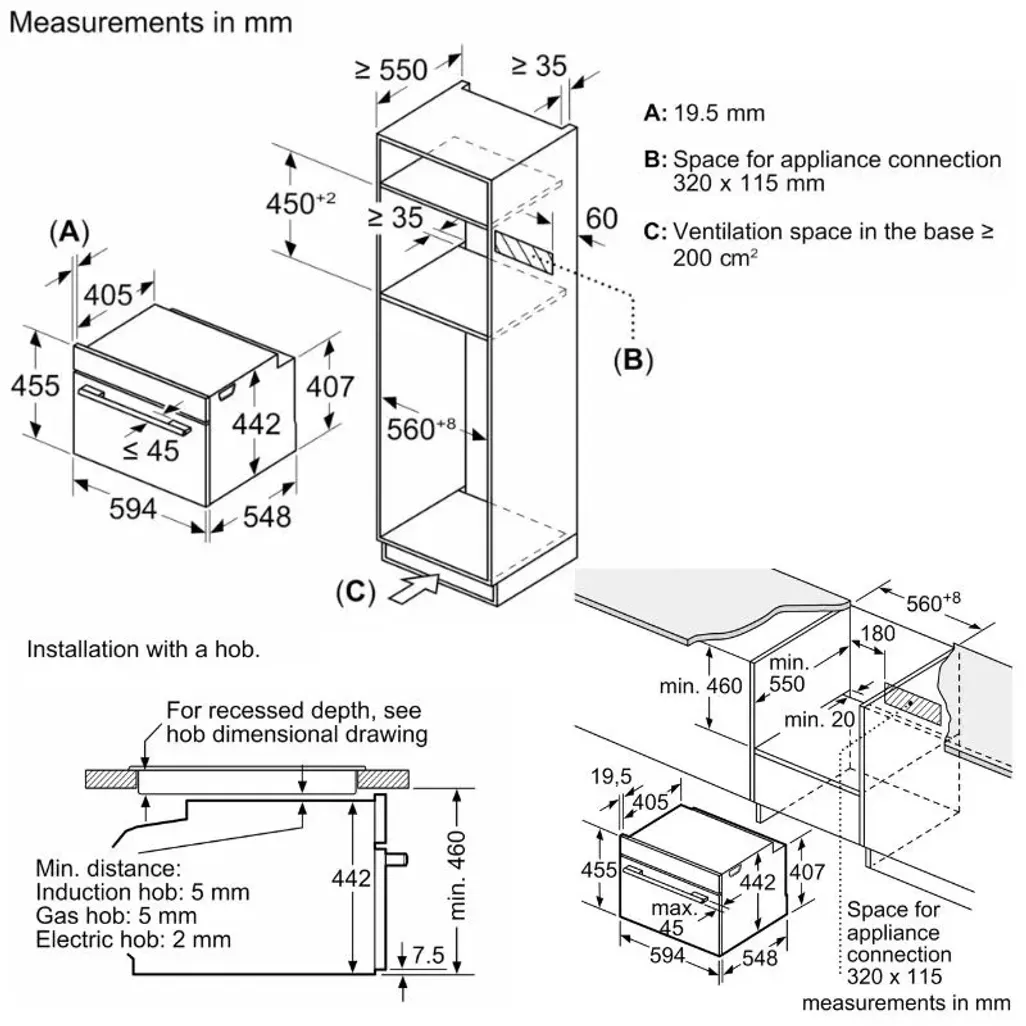 The dimensions of the Siemens IQ700 Microwave Oven are 455mm x 594mm x 548mm, and this Siemens Compact Microwave Oven has a 5-year guarantee.