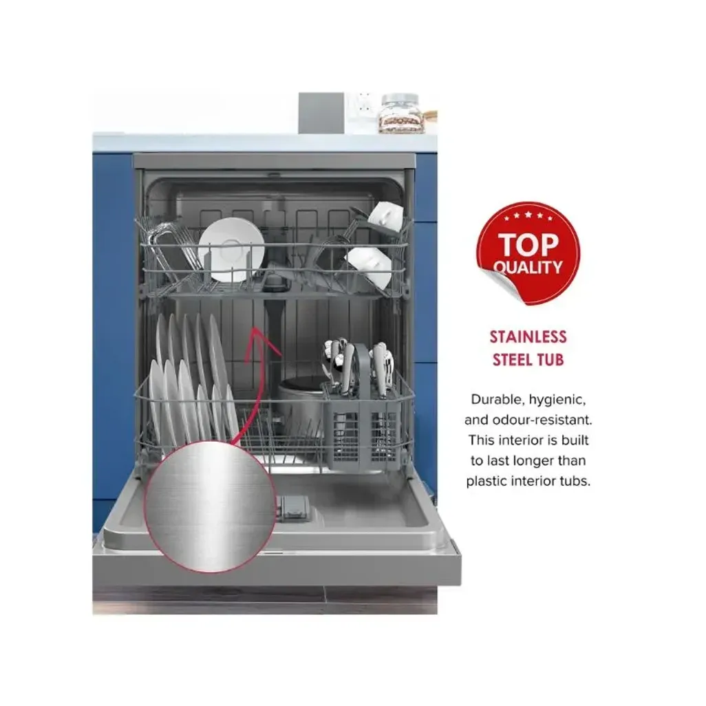 The Defy 15 Place Inox Dishwasher is ideal for a busy household, as it has a cutlery tray and basket, to provide a 15-place setting and a total of eight programs that you can use.