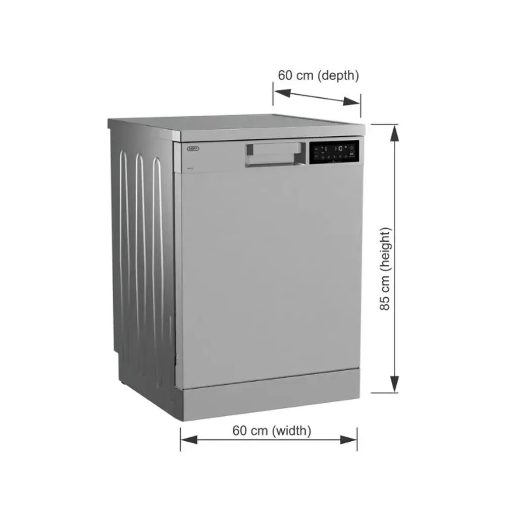 The dimensions of the Defy 15 Place Dishwasher are H 850mm x W 598mm x D 600mm. This Defy Dishwasher has a 2-year warranty, and you can register for an additional 3-year warranty online.