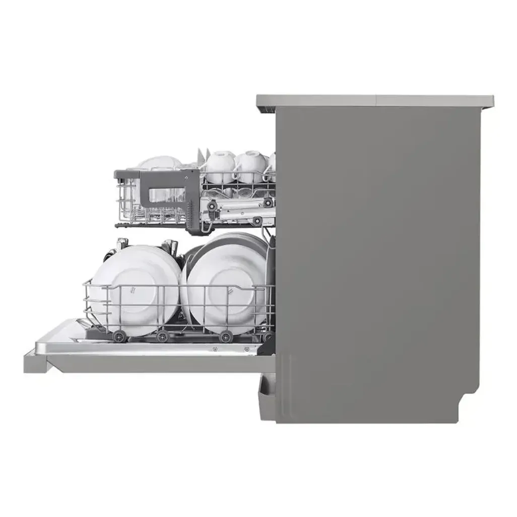 This LG 14 Place Dishwasher has a minimalist exterior design and an elegant interior design. There is a height-adjustable upper rack, that has three different levels, so you can load taller items in the bottom rack. Racking system can shift, to handle any challenge that your dishes may serve up.