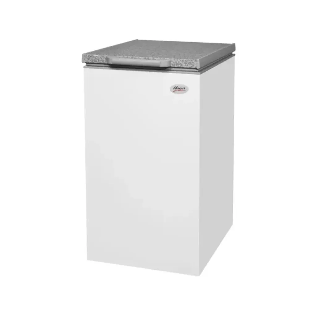 The Univa 110L Chest Freezer is an energy-efficient freezer that has plastic hinges, and you can choose between three functions to ensure that your groceries are stored at the ideal temperature. To prolong the lifespan of this freezer, the interior has been manufactured with a non-rust finish.