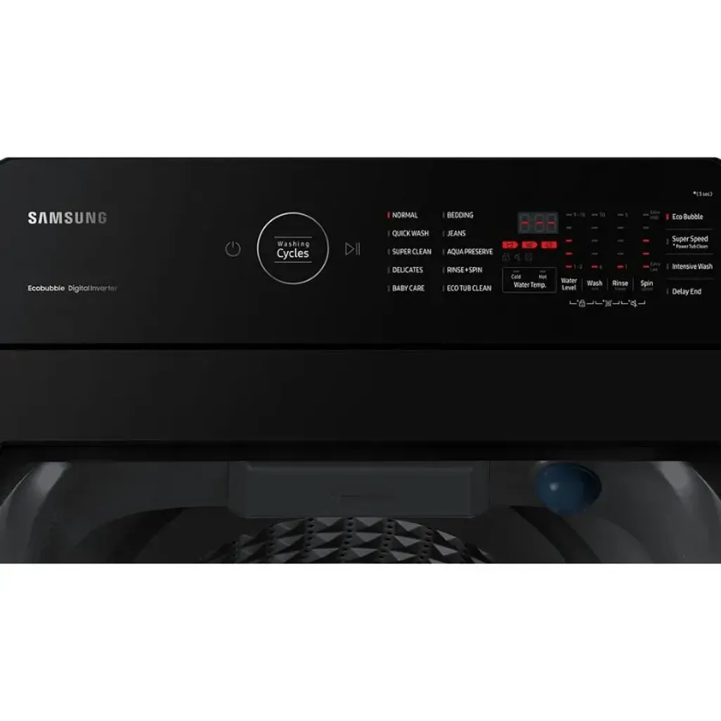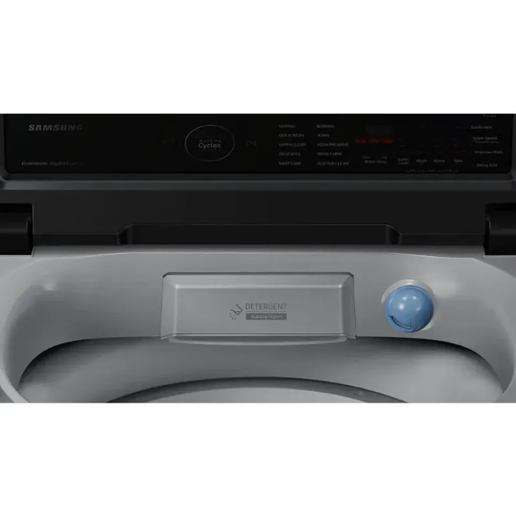 The Samsung 10kg Grey Top Loader Washing Machine has Ecobubble technology, therefore the detergent is frothed up with air and water to create bubbles. BubbleStorm will help detergent penetrate fabric faster and more effectively, to take better care of your laundry. In addition, it will save energy and protect the color and texture of your laundry.