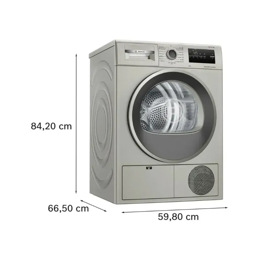 The dimensions of this Bosch Tumble Dryer are H 842mm x W 598mm x D 613mm, and this Bosch Tumble Dryer has a 3-year guarantee.