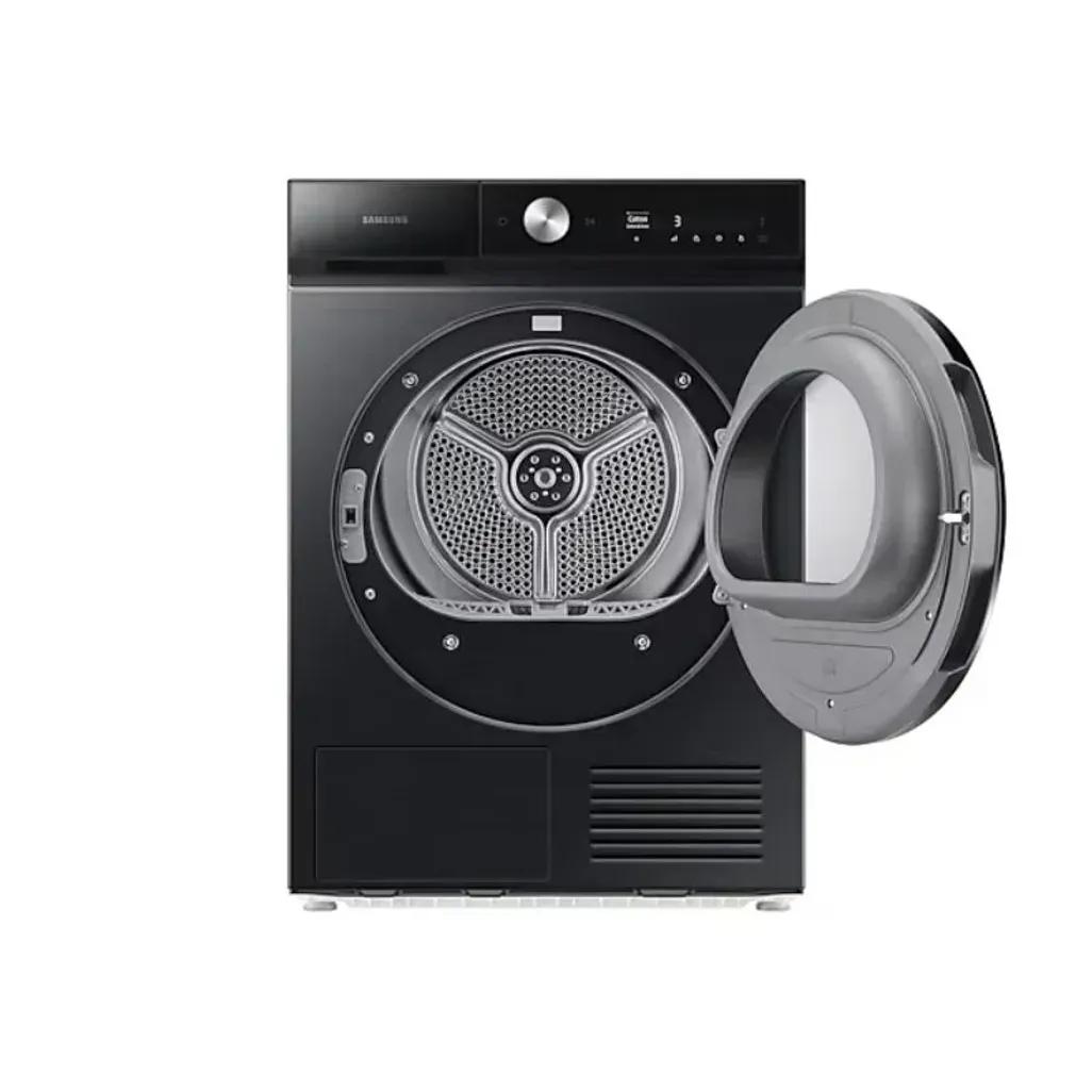 The dimensions of the Samsung Bespoke 9kg Heat Pumble Tumble Dryer are H 850mm x W 600mm x D 600mm. It has a 2-year guarantee and a 20-year warranty on the Digital Inverter Technology.