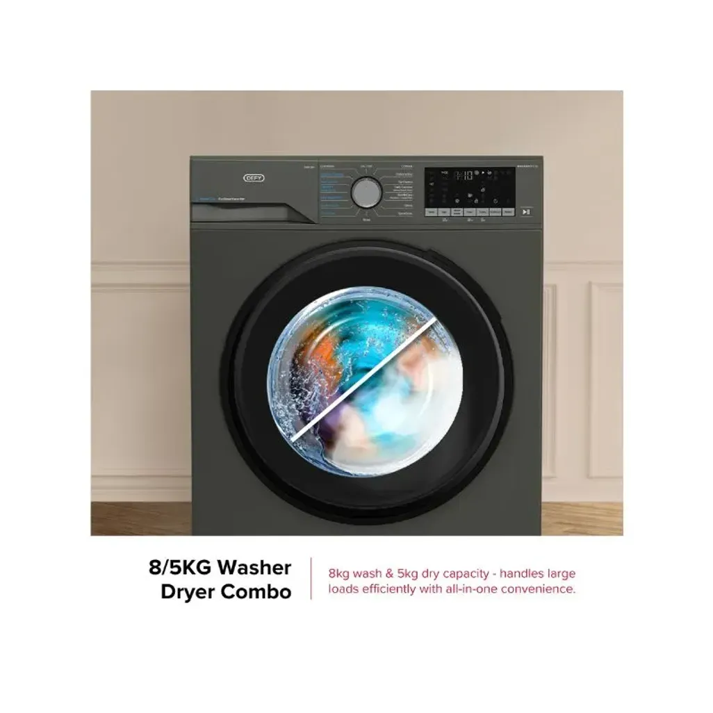 Upgrade your laundry routine with the Defy 8/5kg SteamCure Manhattan Grey Washer Dryer. It is a sleek and powerful all-in-one solution designed to make washing and drying effortless. Boosting an impressive A energy rating, this appliance is both eco-friendly and cost-effective, saving you energy and electrical bills while delivering exceptional performance. With an 8kg washing capacity and 5kg drying capacity, perfect for families or busy households, making handling your large loads with ease.