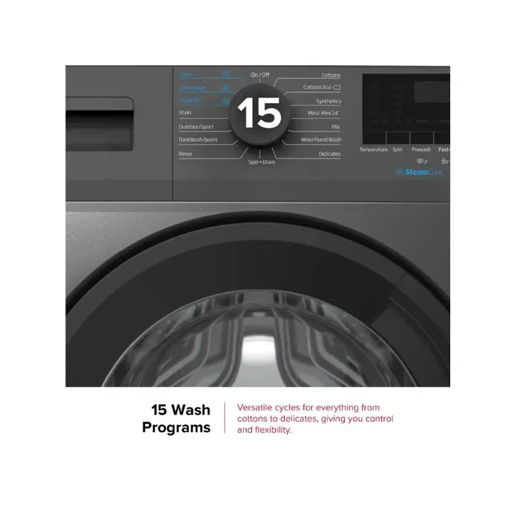 It is ideal for small to medium-sized households, looking to handle everything from daily wear to much larger items. It features Steamcure Technology, which uses the natural power of steam to lift stubborn stains, reduce creases, and ensure a deeper clean. Features an LED digital display which allows for easy control.