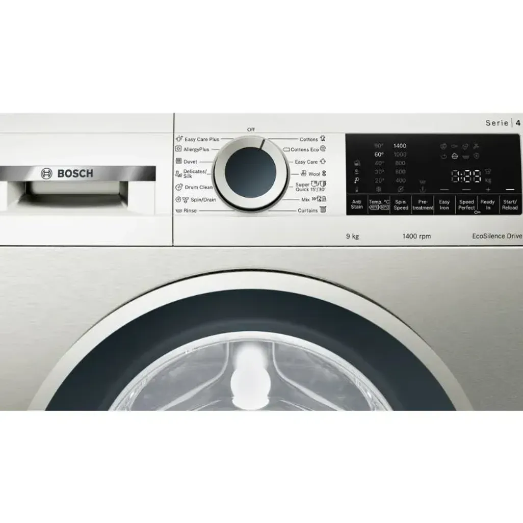 The dimensions of the Bosch 9kg Inox Front Loader are H 845mm x W 597mm x D 588mm, and this Bosch Front Loader has a 3-year guarantee.