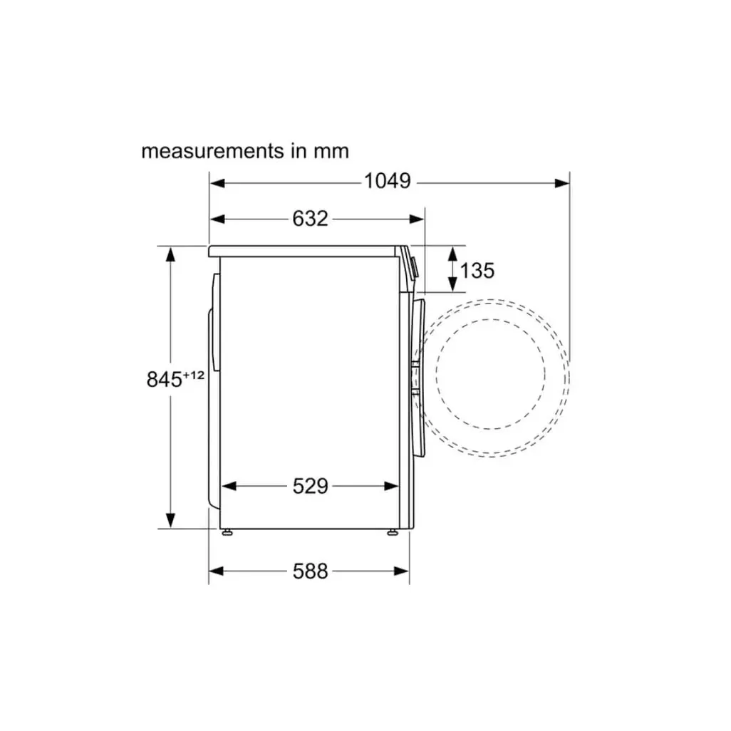 The dimensions of the Siemens 9kg Silver Inox Front Loader Washing Machine are H 845mm x W 597mm x D 588mm. This Siemens Washing Machine comes with a 3-year guarantee and the iQdrive motor has a 10-year warranty.