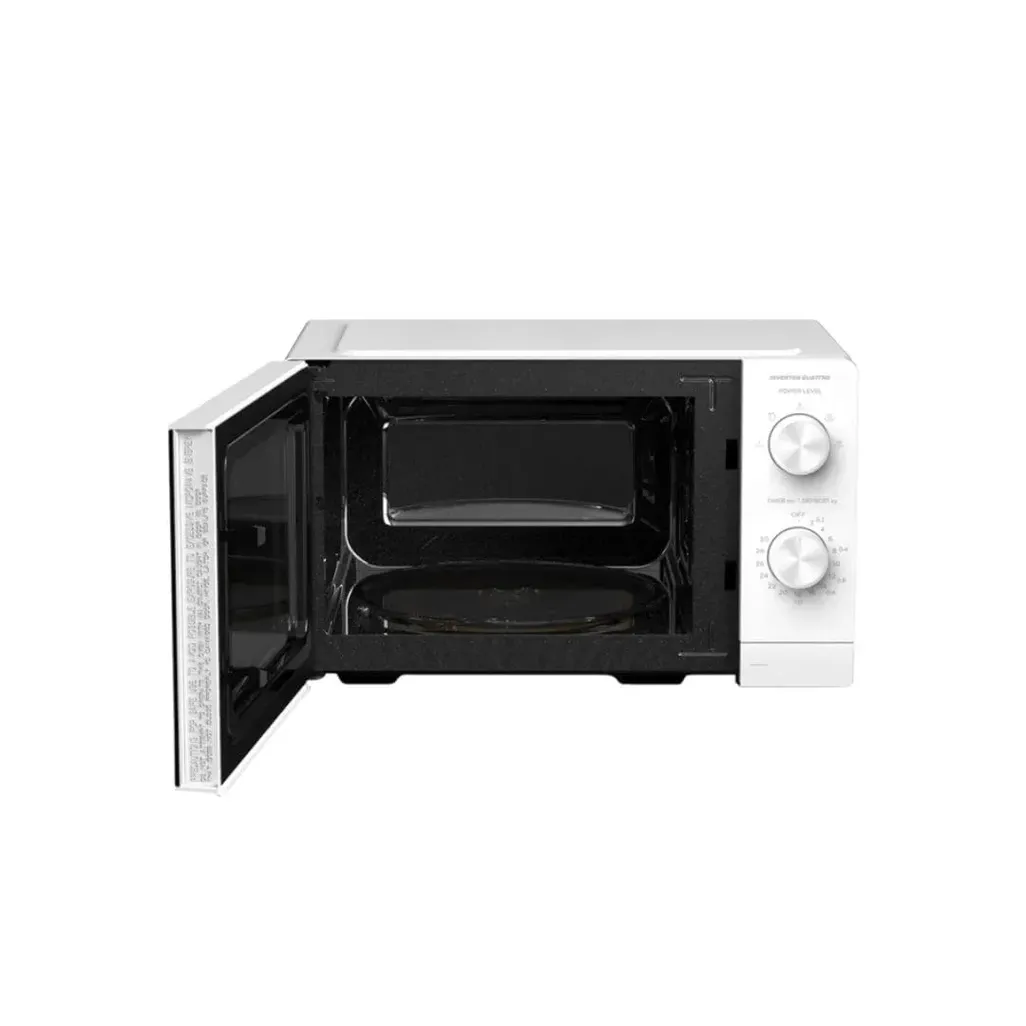 The Midea 20L White Inverter Microwave Oven is designed to efficiently elevate your cooking experience. Powered by Midea’s advanced Manual SMARTWAVE Technology, this microwave optimizes energy use, reducing power consumption by 21% and offering a quieter operation for an eco-friendly kitchen. Its intelligent control system adapts to a wide voltage range (170~270V), safeguarding against power fluctuations for lasting durability.