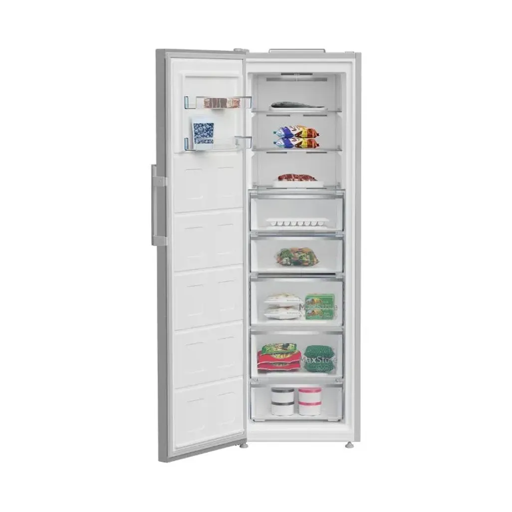 The Beko 286L Pearl Steel Upright Freezer inverter brings high efficiency, high durability, low noise and offers energy efficiency.