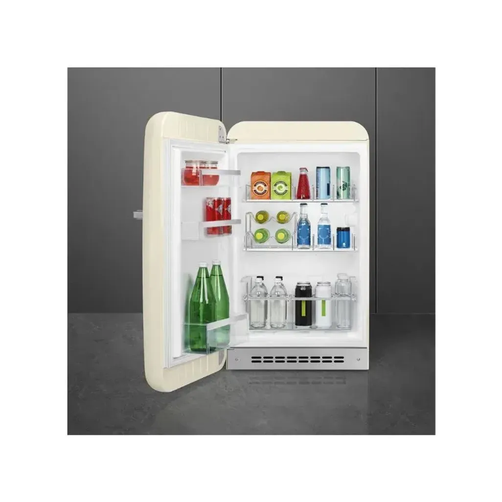 You can't go wrong with this Smeg 55cm Retro Cream Left Hinge Happy Bar Fridge. It offers 135.1L storage, adjustable shelves, and comes with an external left hinge that ensures for practicality and no effort to open and close. There is no need to manually defrost this fridge, thanks to the automatic defrost system. This function will automatically defrost at regular intervals. This appliance is suitable for working at room temperature between 10°C and 43°C as it comes with a climate class SN-T. Whether you are moving into your first apartment or just want to add a classy and unique appliance to your home, this bar fridge is perfect.
