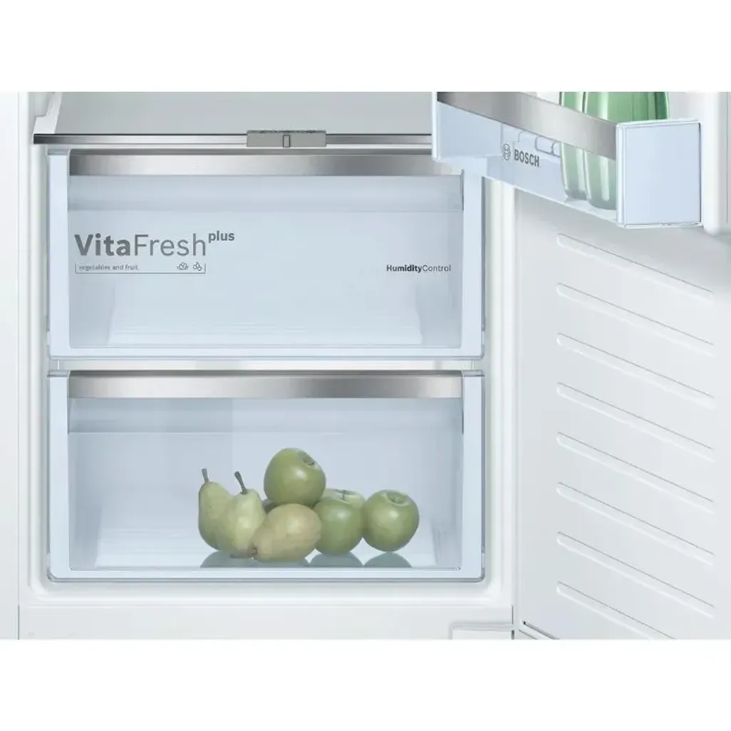 The Bosch 319L Built-In Upright Fridge features various space-saving solutions, including a VitaFresh drawer, for storing fruits and vegetables, and there is an Easy Access Shelf, that is made of shatterproof glass and will allow you to see your contents at a glance. In addition, there is a bottle rack that can be used to place your bottles.
