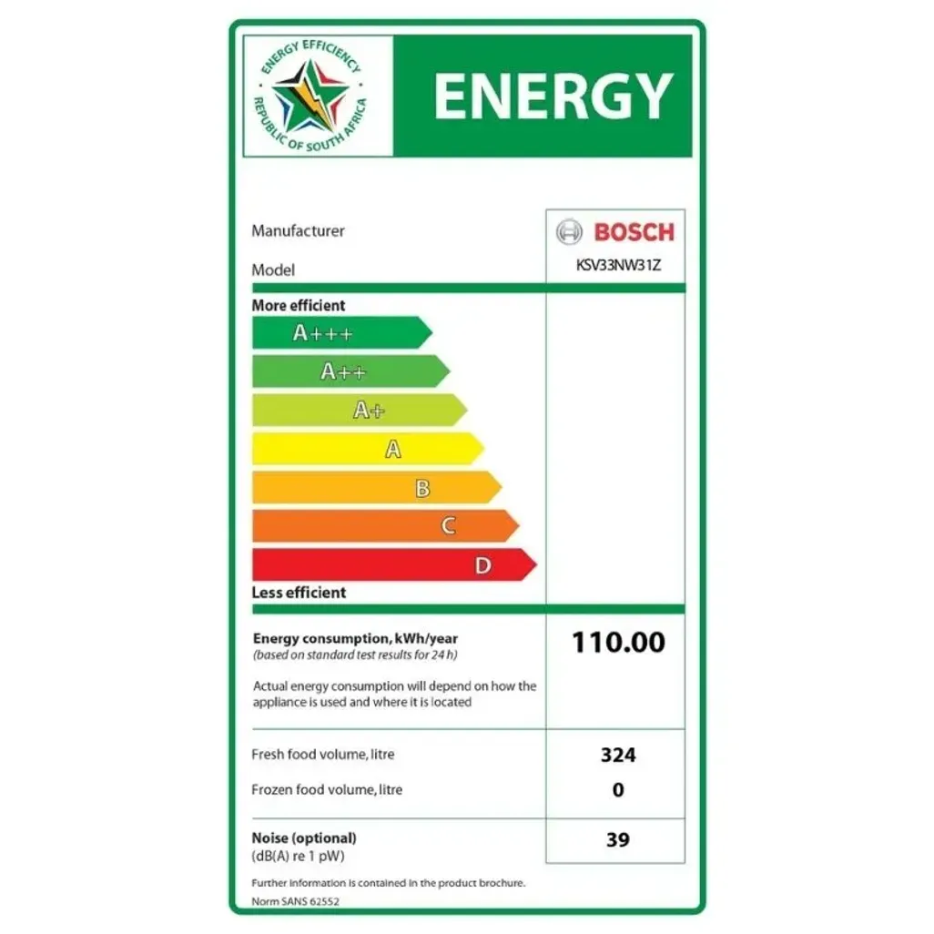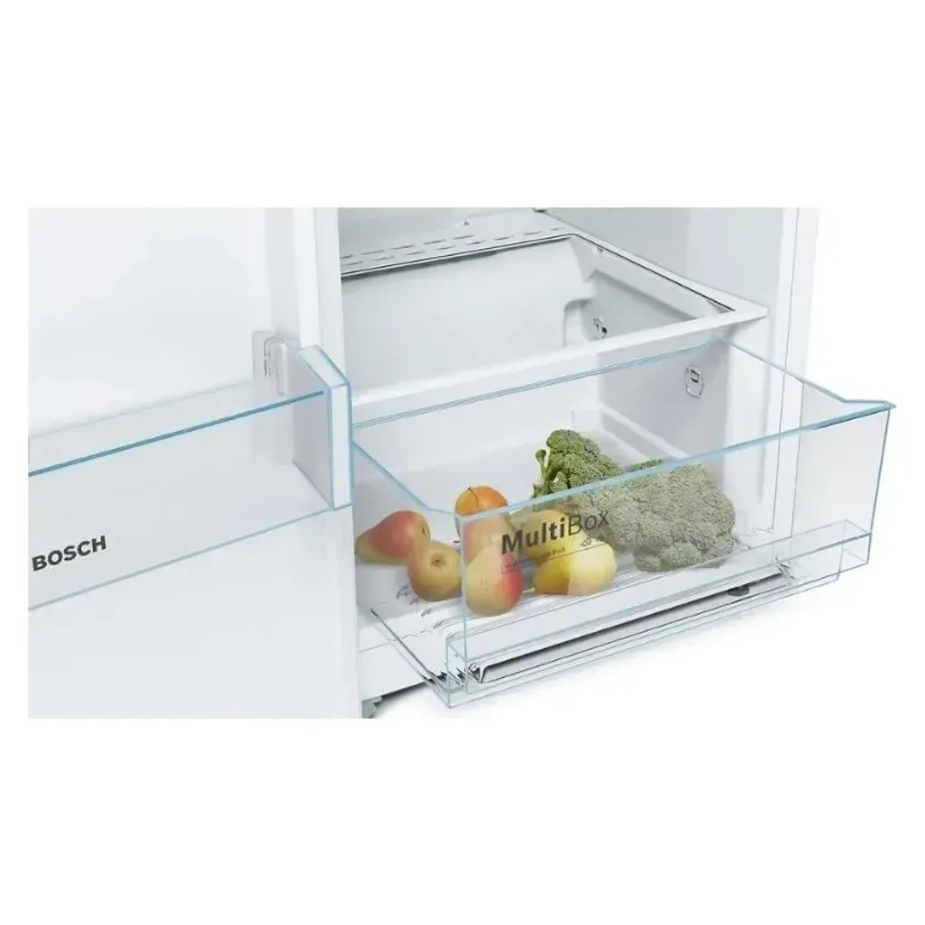 Temperatures inside your Bosch 324L White Upright Fridge can now be kept constant regardless of the outside temperature with Fresh Sense technology. The intelligent sensor will immediately take countermeasures, to ensure that your food is preserved at an ideal temperature to achieve more freshness and flavour.