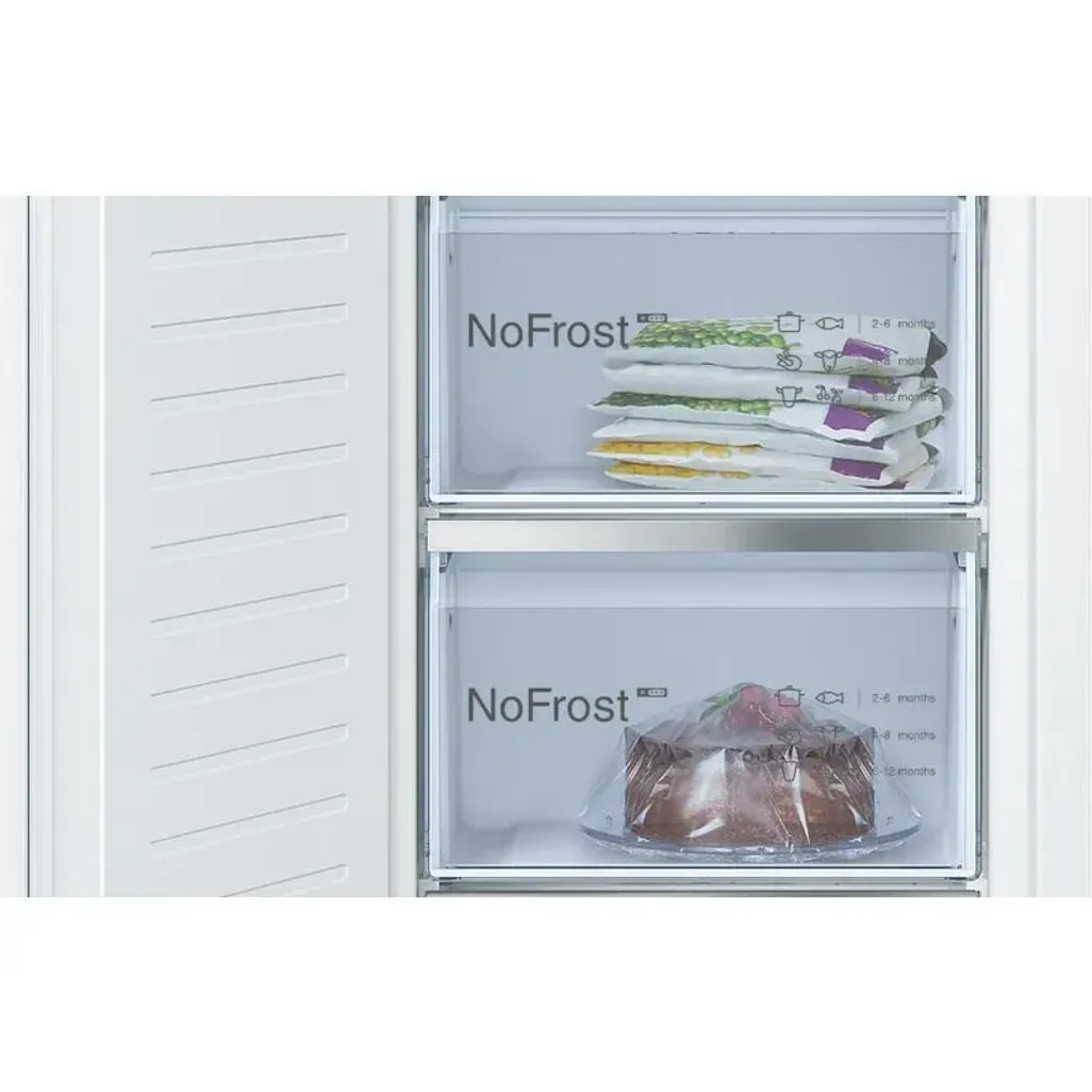 No Frost technology defrosts the Bosch 211L Built-In Upright Freezer by itself. Ice build-up is thus prevented by the air circulating system. Which removes humidity from your freezer. You can now benefit from not having to use physical effort to defrost your freezer manually.