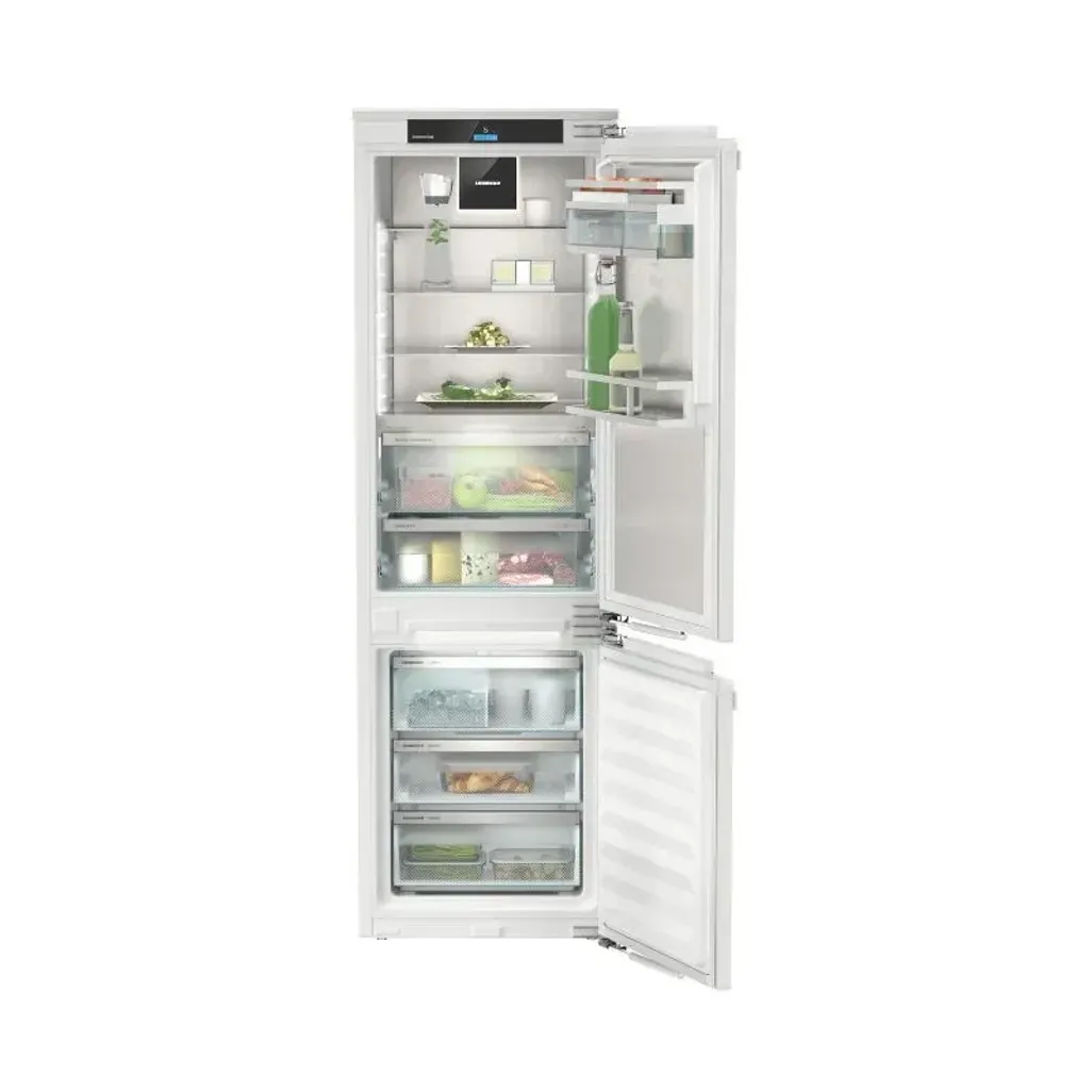 Upgrade your kitchen space with the Liebherr 245L Integrated Bottom Freezer, which offers a generous 175-litre fridge capacity and a 70-litre freezer capacity. This built-in fridge-freezer is perfect for storing bulk or large items. It operates at a super-silent 34dB, making it ideal for you. This fridge is designed to keep your food fresher for longer with its amazing features. It includes 2 Biofresh safes, a dedicated fruit and vegetable safe, a meat and dairy safe, and a flex system to help keep your items organised. Fresh air-activated charcoal filter, ensuring optimal air quality and freshness