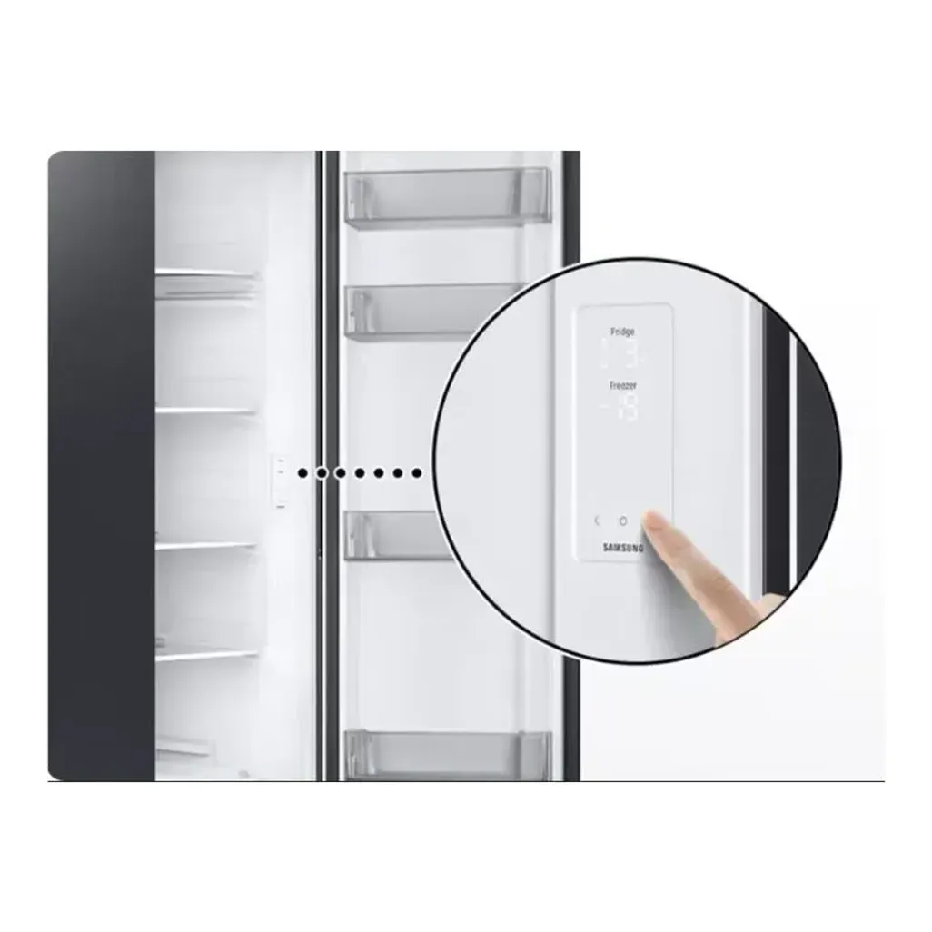 You are able to reduce up to 15% energy with the Samsung 564L Side By Side Matt Black Fridge AI energy mode SmartThings Energy. This basically helps you to save energy. This function also adjusts the compressor speed and defrost cycle based on your usage pattern, including your surroundings. Before activation, it will display a notification from which you will be able to choose between maximum mode and custom mode.