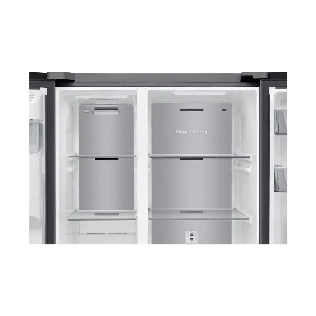 Thanks to the metal cooling and mono cooling technology, temperatures remain consistent throughout, locking in freshness and flavour in every corner. The side-by-side features an A++ energy rating, which monitors and reduces your energy consumption by up to 15% with AI Energy Mode in SmartThings Energy, perfect for families looking to save on energy consumption. The all-round cooling system ensures that each compartment is evenly cooled and kept at optimal temperature.