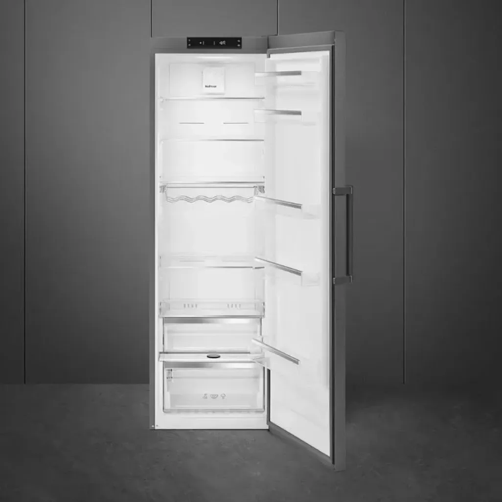 The Smeg 380L Dark Inox Upright Fridge has an automatic defrosting system, that will prevent a build-up of ice in this upright fridge. At regular intervals, the auto defrosting system will automatically defrost the fridge, so you can say goodbye to the days when you have to use physical effort to defrost your fridge manually.