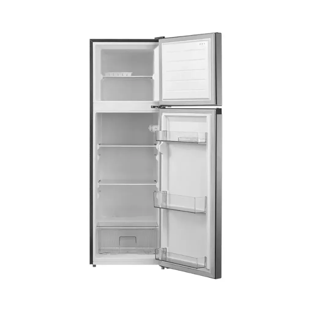 Add this stylish Midea 173L Silver Top Freezer Fridge to your kitchen. It comes with a total net capacity of 173L and has been given an A rating for energy efficiency. The refrigerator offers you a space to place your 2L bottles, 3 shelf spacing with a fruit and vegetable drawer. It has recessed handles, manual temperture control, manual defrost and LED lighting. The LED lighting, along with specialised evaporator technology, will enhance performance and provide a reliable and functional solution for all your cooling needs.