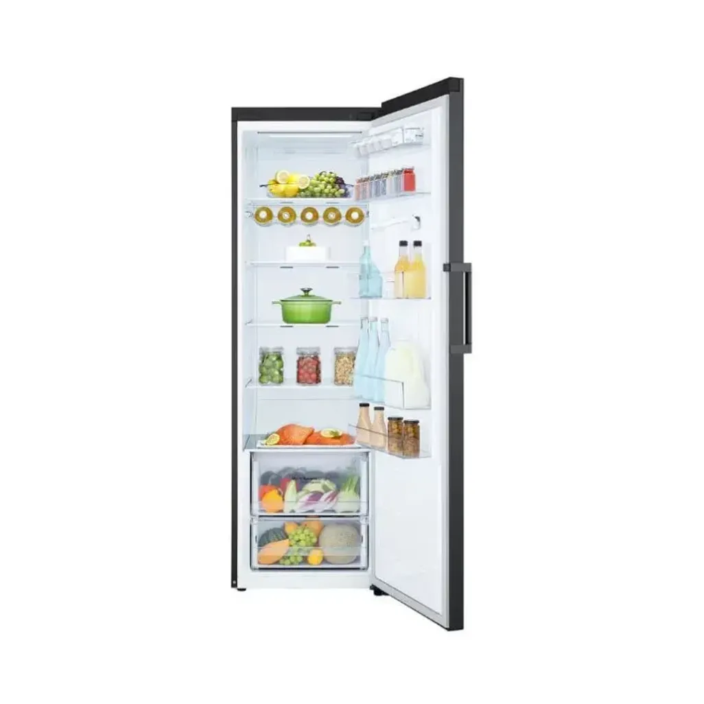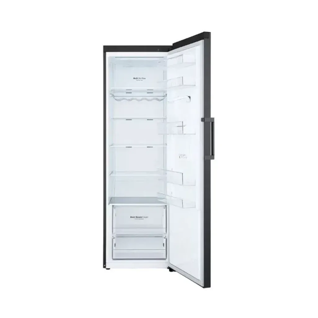 Your food will be kept fresher for longer thanks to the LG 411L Matte Black Upright Fridge with its LINEAR cooling function. The LG inverter linear compressor assists by maintaining the appearance and taste by reducing temperature fluctuations. The Door Cooling+ offers fast cooling for door-stored items. The air vents that are located in the front ceiling of the fridge will provide direct cold air onto the top door baskets.