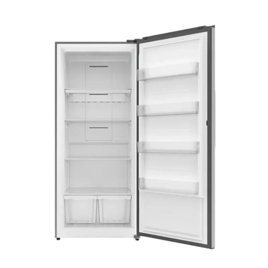 The dimensions of this Midea 595L Upright Fridge are H 1950mm x W 832mm x D 745mm, and it has a 5-year warranty.