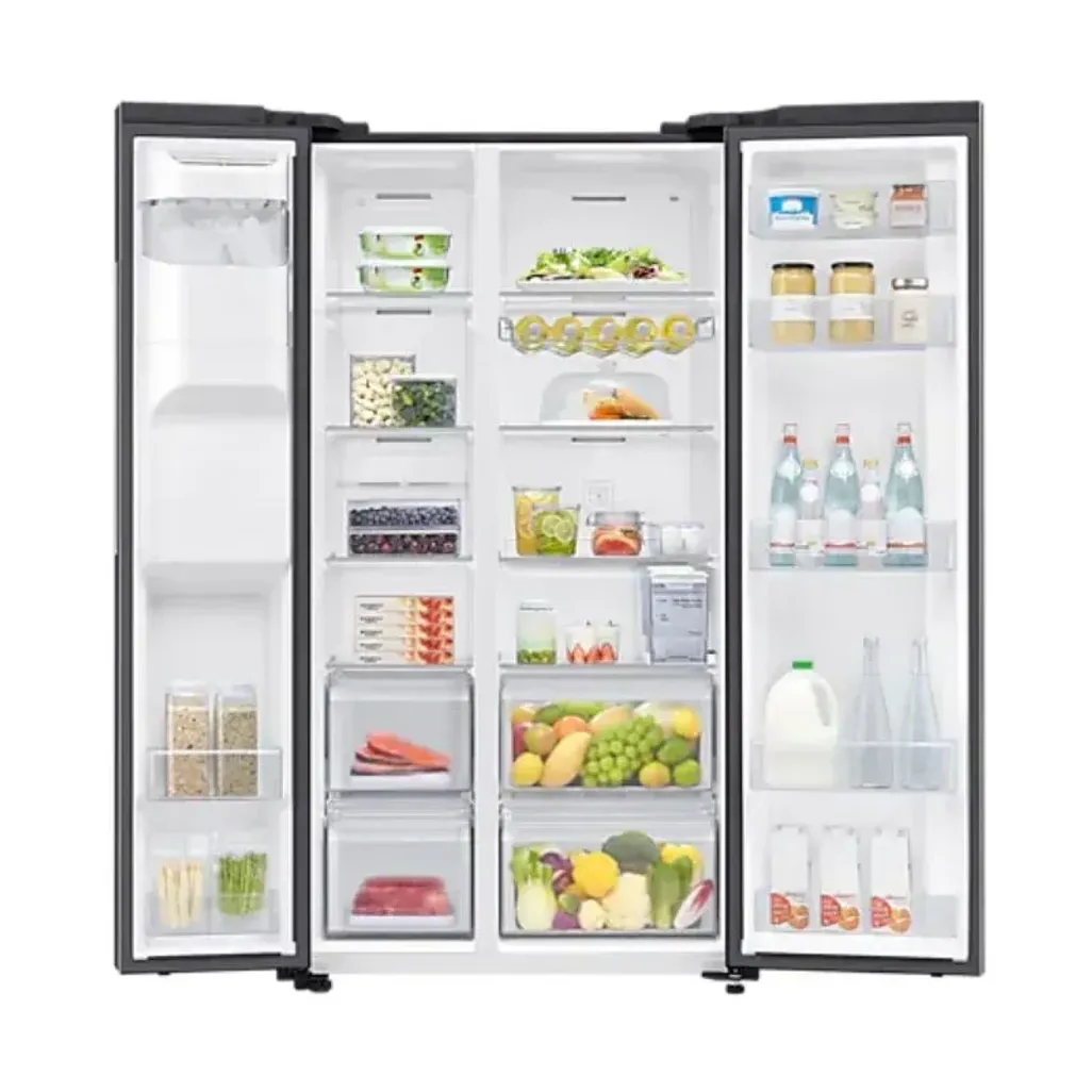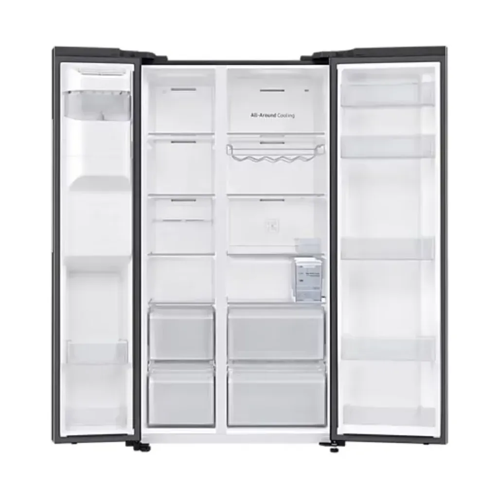 Thanks to the All-around Cooling system, every section of every compartment of the Samsung 617L Gentle Black Side By Side Fridge will have the same temperature to ensure that your food will stay fresher for a longer period of time. The All-around Cooling system works on every level of the refrigerator, to maintain an even temperature throughout the refrigerator, especially after someone has opened the refrigerator door.