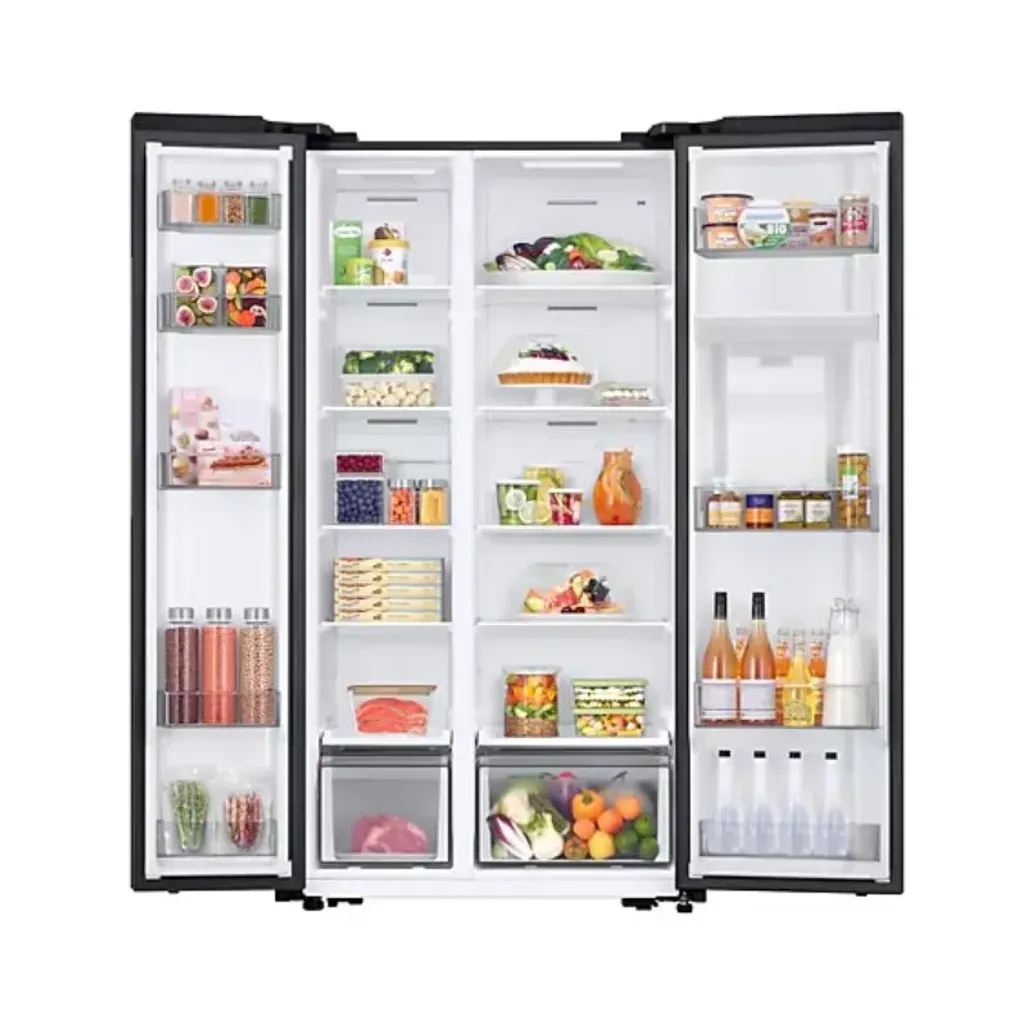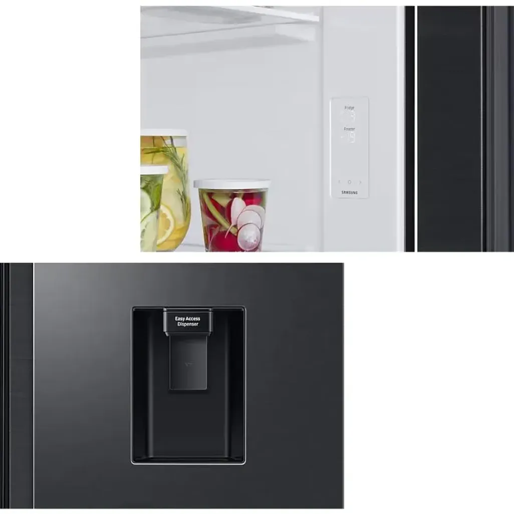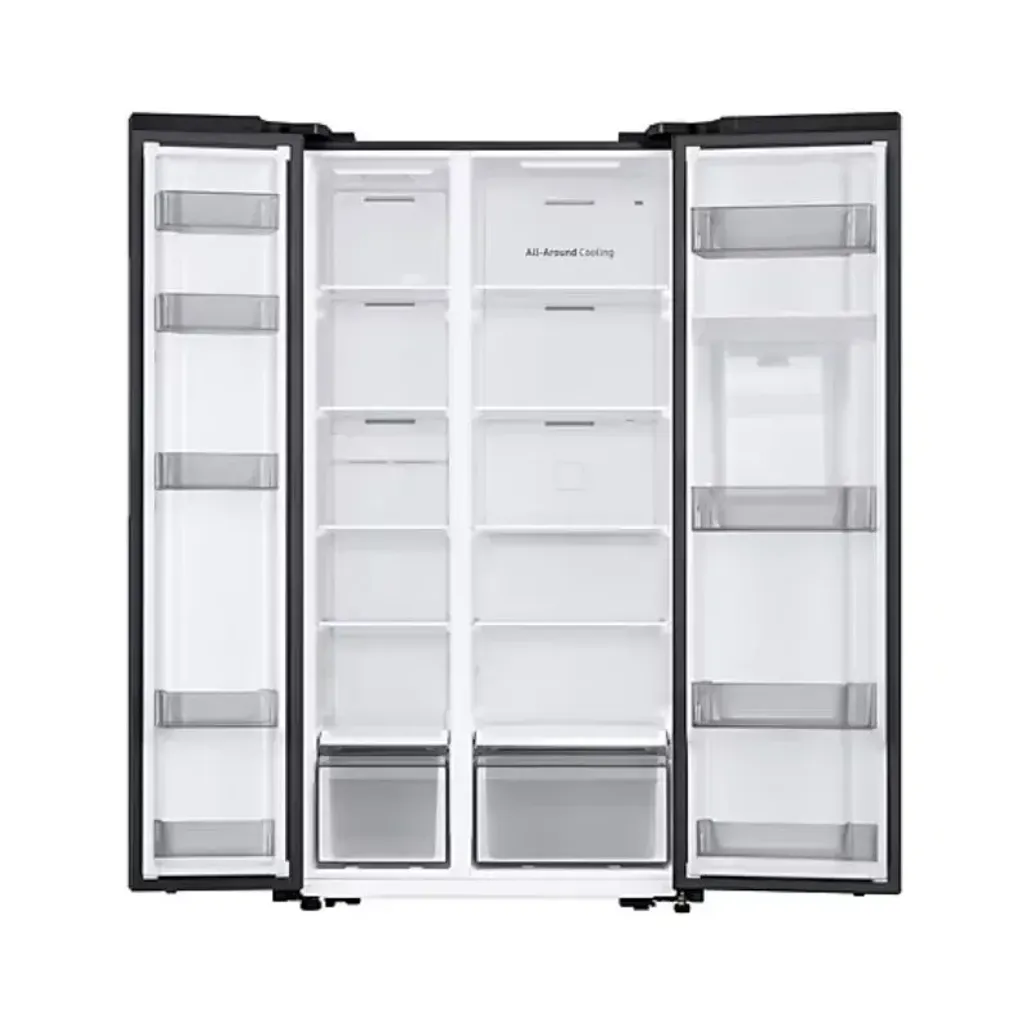 Thanks to the All-around Cooling system, every section of every compartment of the Samsung 560L Gentle Matt Black Side By Side Fridge will have the same temperature to ensure that your food will stay fresher for a longer period of time. The All-around Cooling system will continually check the temperature and circulate cool air evenly, using strategically placed vents.