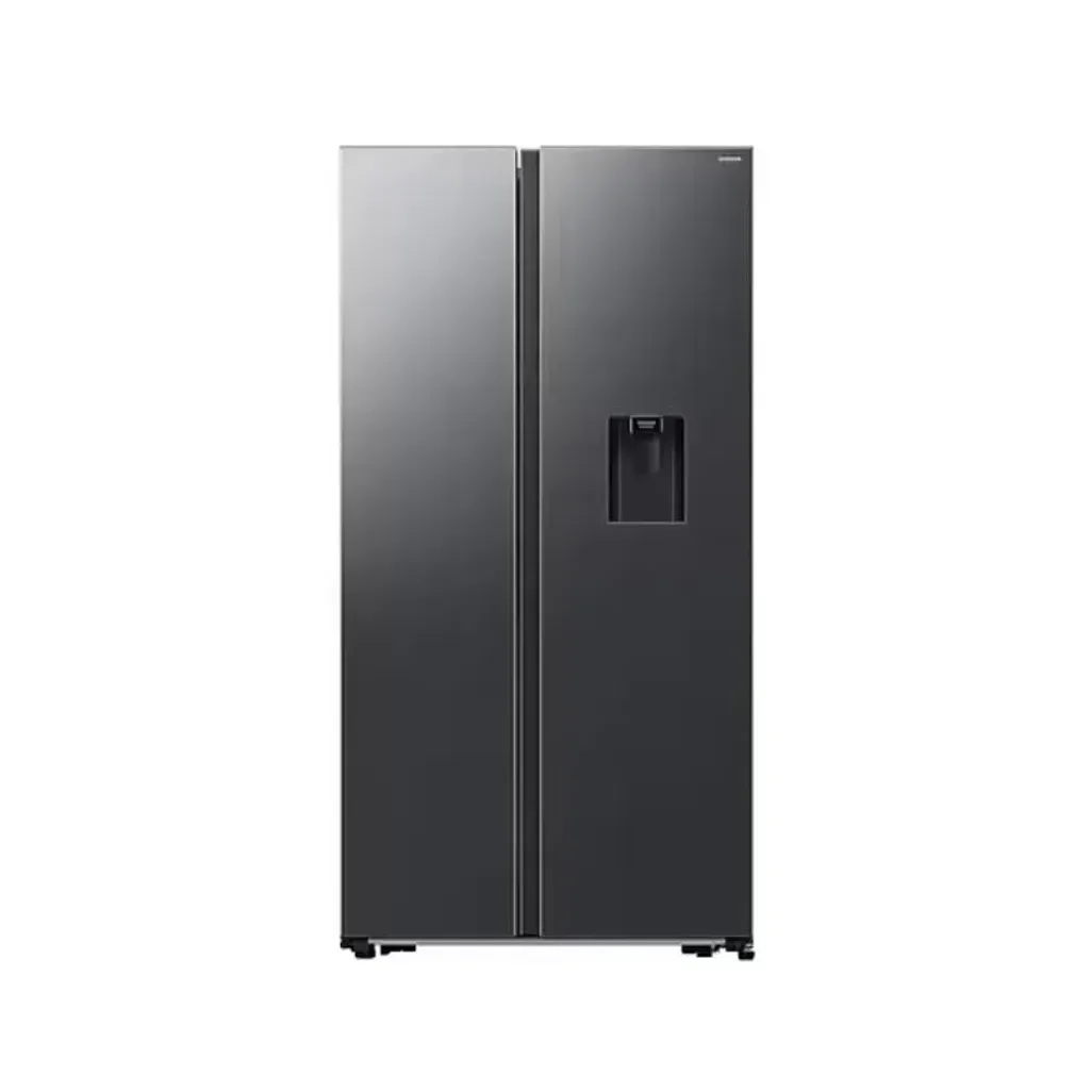 The dimensions of the Samsung 560L Gentle Matt Black Side By Side Fridge are H 1780mm x W 912mm x D 654mm. This Samsung Side by Side Fridge has a 2-year guarantee, and this fridge has a digital inverter compressor, that comes with a 20-year warranty.