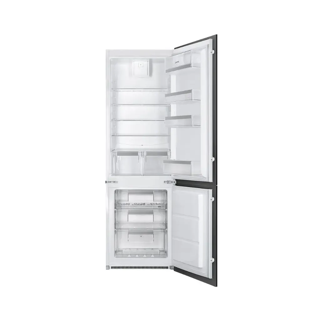 The Smeg 273L Integrated Fridge/Freezer fast freezing feature, will rapidly lower the freezer's temperature to quickly freeze the food you recently added, preserving its nutrients, flavour and texture by forming small ice crystals instead of large ones and the no frost function will prevent the formation of ice and will contribute to better preservation of your food.