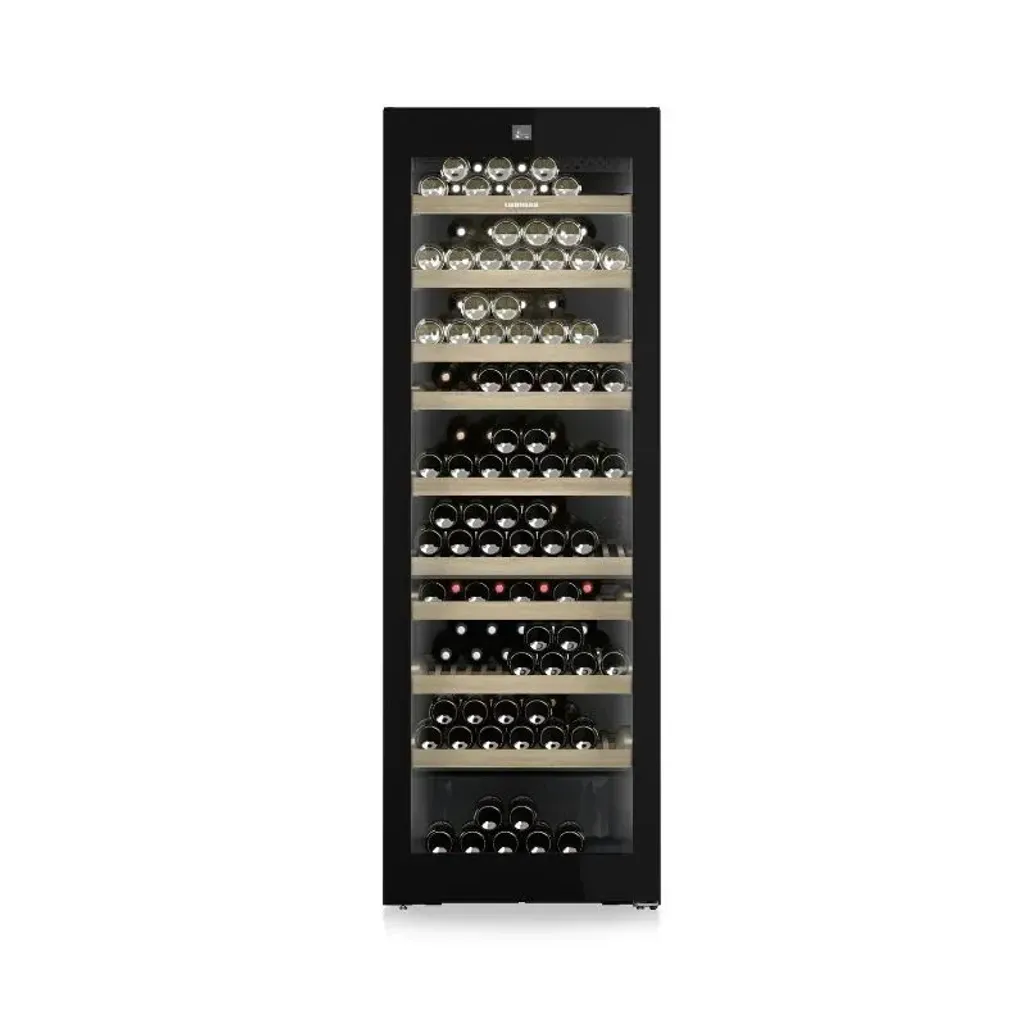 The Liebherr 211 Bottle Vinidor Wine Cooler has 8 pull-out shelves for easy access, and the reversible door hinges offer enhanced flexibility in appliance placement.