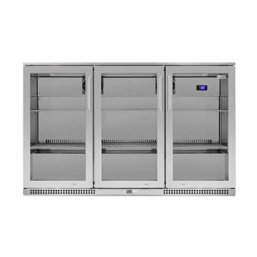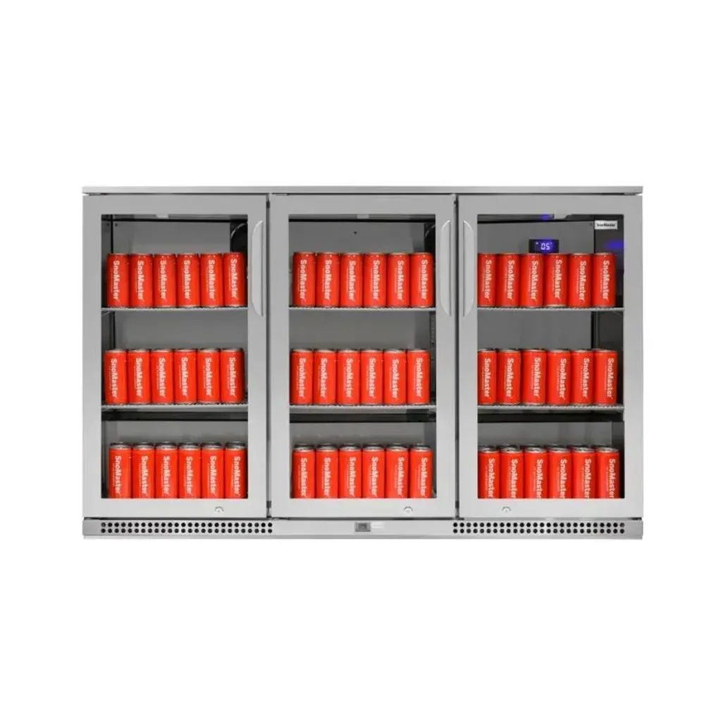 The dimensions of this SnoMaster 300L Undercounter Beverage Cooler are H 850mm x W 1350mm x D 520mm, and it has a 2-year warranty.