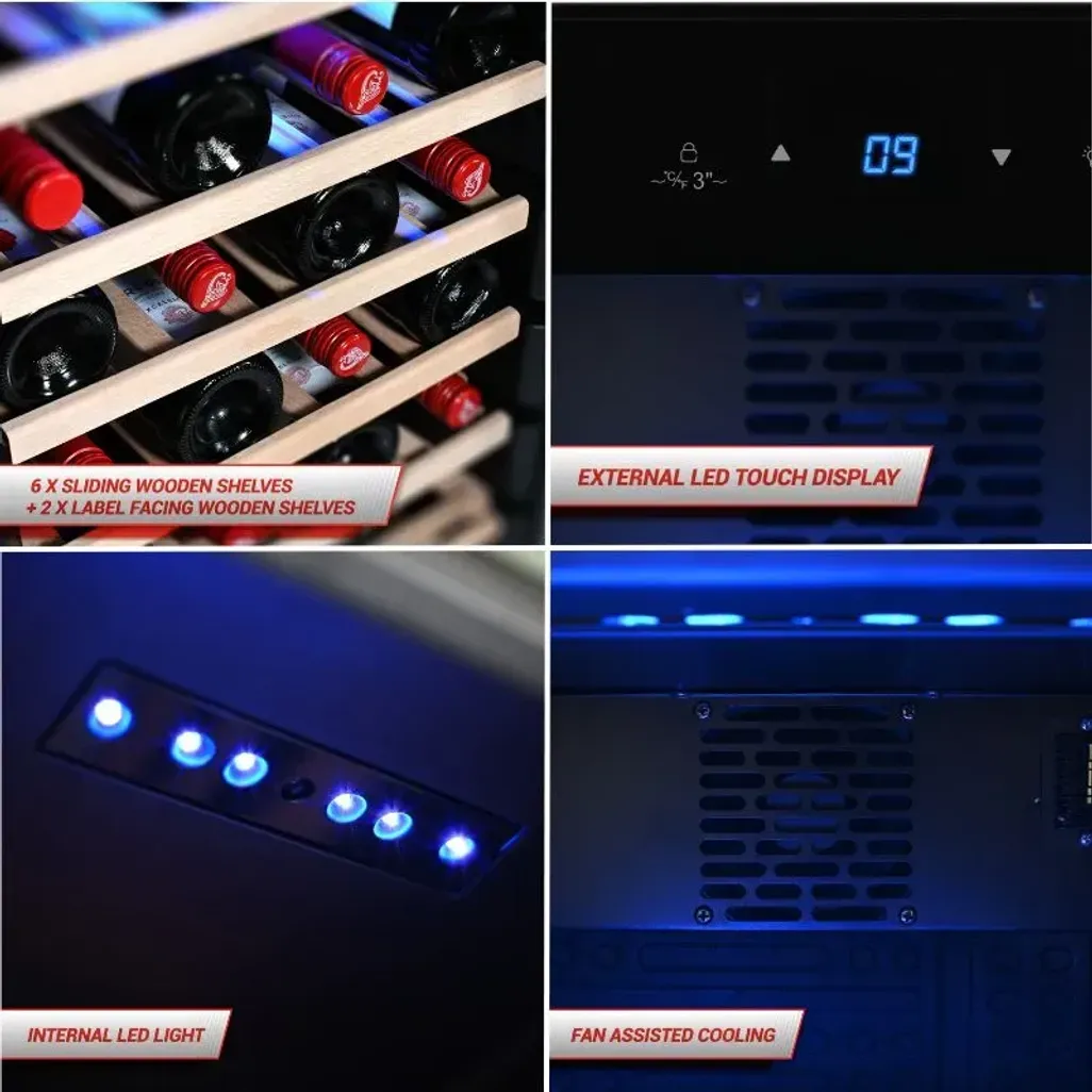 The SnoMaster 28 Bottle Single Zone Wine Cooler is perfect if you and your partner, or roommate are casual wine drinkers or wine connoisseurs. It has a sleek black finish, with a tempered glass door. A consistent temperature will be maintained, with the help of the fan-assisted cooling system, while the external LED touch display will allow you to easily adjust settings.