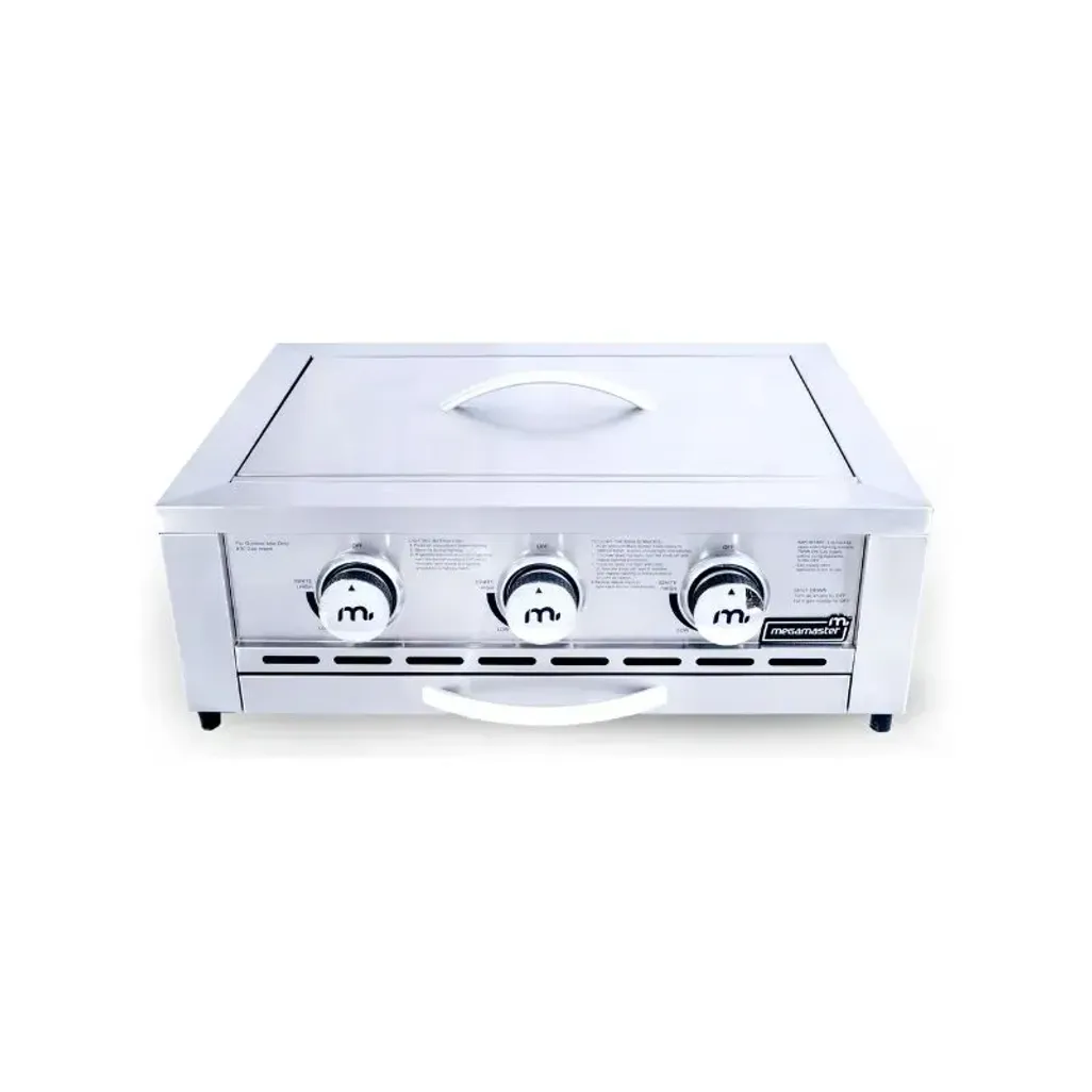 Change any built-in braai into a gas braai with the Megamaster 630 Gas Braai Insert. It's equipped with 3 burners (push and turn ignition system) that will allow for even heat control. Total heat output is 27000 BTU's. The firebox and lid are made for stainless steel and include a drip tray for that easy and convenient cleaning. This gas insert also includes items like three 410-grade stainless steel pancake burners, a hose and regulator for a 9kg gas cylinder.