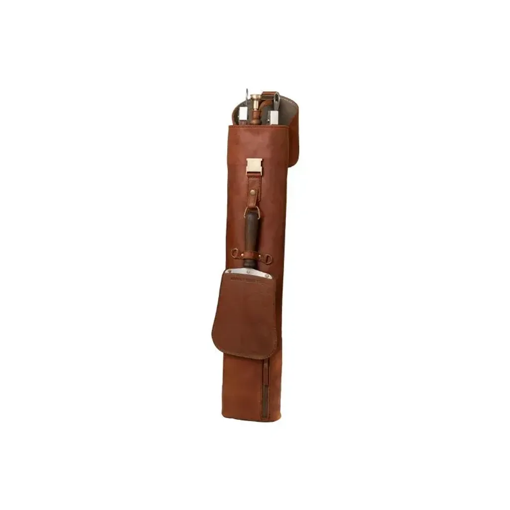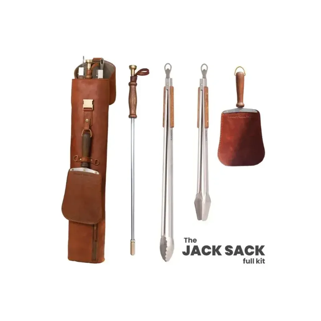 The Donkey Long Tong Jack Sack Full Kit comes with all your braai essentials, ready for on-the-go and adds simplicity to your life. The full Jack sack kit is made from genuine leather, brass buckles, and extra pockets for storage.