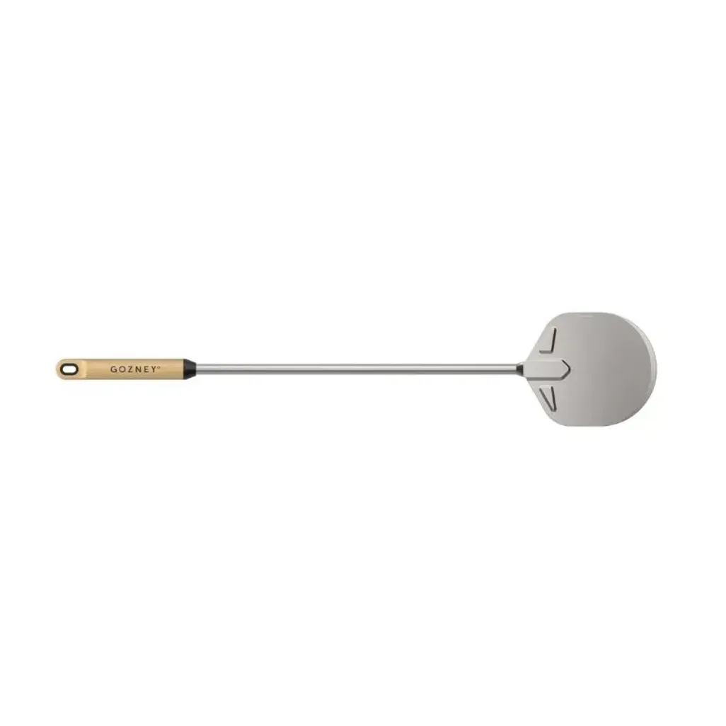 Enhance your pizza craft with the Gozney Utility Turning Peel, your new go-to tool for precision, control, and ease. Designed as the workhorse of your pizza accessories, this turning peel features a robust 152mm wide, single-piece stainless steel blade that effortlessly lifts, rotates, and transfers your pizzas with complete control.