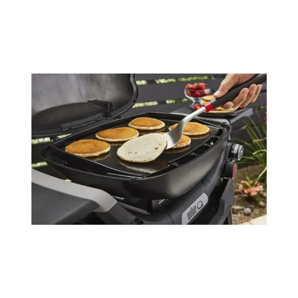 Get this Weber Cast Iron Q3200N Full Griddle to transform your Weber gas braai into a grilling machine. This non-stick griddle will allow you to grill, bake or fry foods like bacon, eggs, hamburgers, pancakes and fish, just to name a few. It will evenly distribute heat across the surface for consistent results.