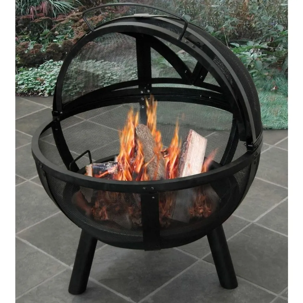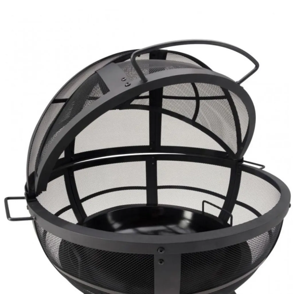 The Landmann Ball Of Fire is an outdoor fireplace with spherical mesh for spark protection. This sturdy steel construction firepit has a large pivoting section, with an extra-large handle, to provide you with easy access to the fire when you need to re-fuel. In addition, it provides a 360° viewing of the fire.