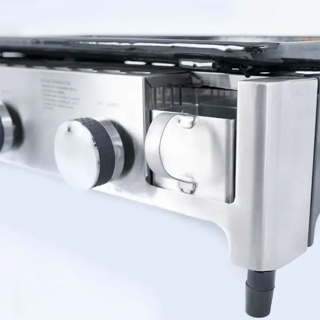 3 Burner Plancha braai has a 2271 cm² cooking space, so this tabletop gas braai will be perfect for a family of five. With a removable grease holder, cleaning will be easy and convenient.